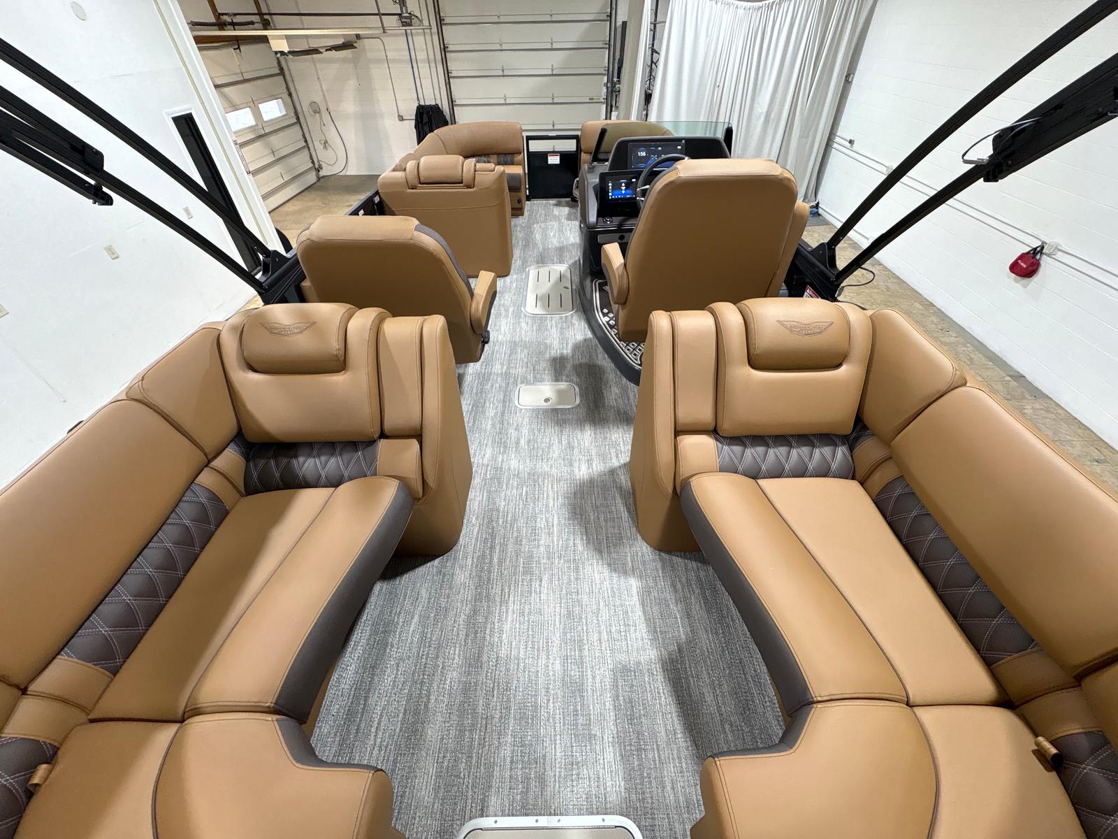 Step aboard the Bennington 23 RFB ESP and discover a world of premium features designed to enhance every moment on the water. Enjoy the ambiance created by illuminated cupholders (eight in total), exterior side lighting, underwater lighting, and toekick lights (2-37' and 2-62'), which add a touch of elegance and safety during evening cruises. The blackout logos and electric power top curved Bimini in sleek black not only provide shade but also elevate the boat’s modern aesthetic.Music lovers will appreciate the Rockford Fosgate audio system, featuring four 6.5" M2 speakers, two 8" M2 speakers (Fastback), a 10" M2 subwoofer, and a dual PM Punch amplifier upgrade. Whether you’re hosting a party or relaxing with a good book, the sound quality is sure to impress. The interior is adorned with Zebrawood Matte Beige accents, creating a sophisticated and inviting atmosphere for you and your guests.