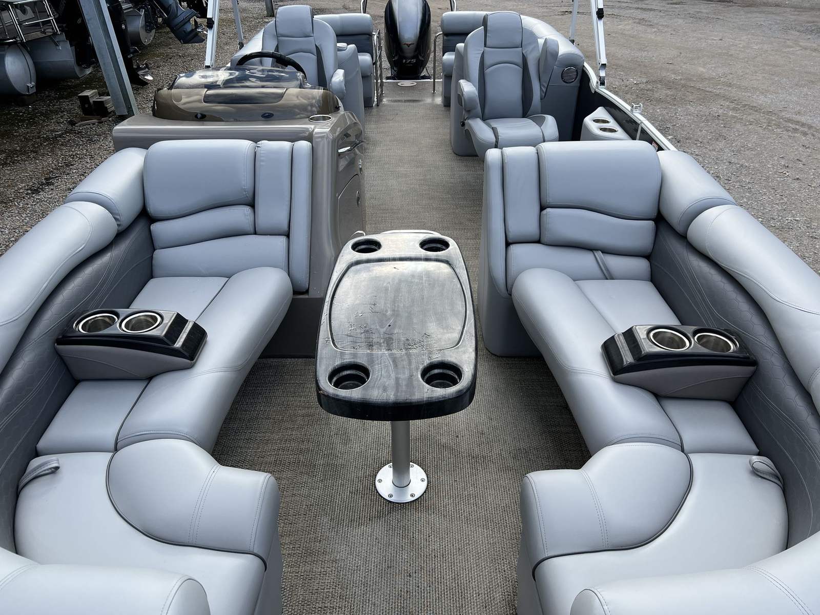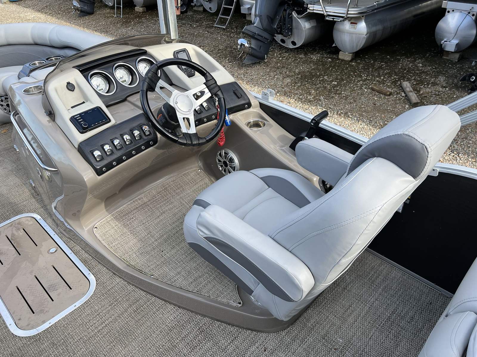 The 2018 Bennington 23 RFB is a 23-foot pontoon that exemplifies the brand’s commitment to quality and comfort. With its spacious layout and thoughtful design, this used pontoon boat offers ample room for relaxation and socializing. The sleek lines and modern aesthetic make it a head-turner at any marina or lake, while its durable construction ensures years of reliable enjoyment. With only 80 engine hours, this Bennington pontoon has been gently used and is ready for many more adventures.