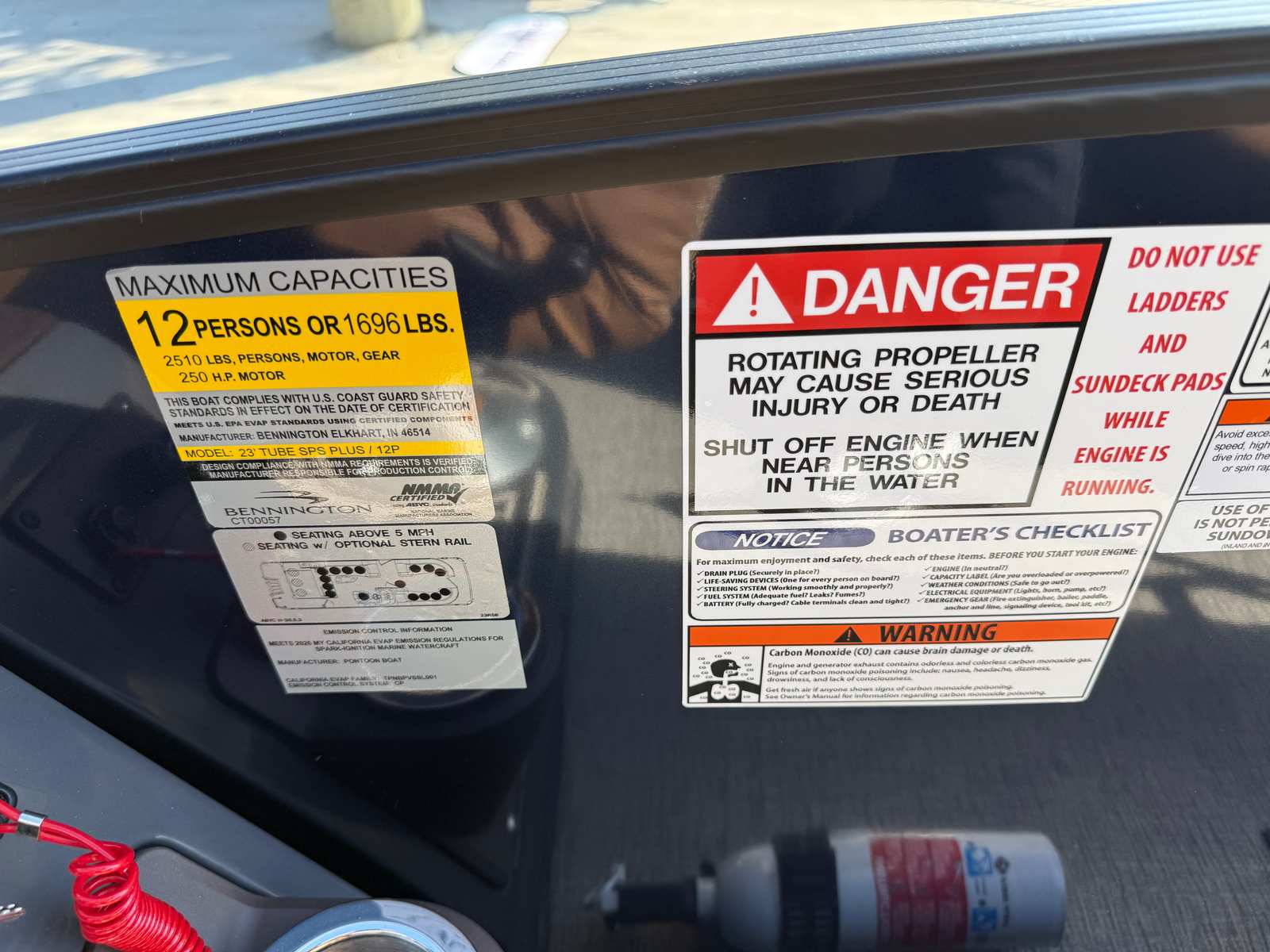 Powering the Bennington 23 RSB SPS Plus is a robust 250-horsepower engine, delivering exhilarating acceleration and smooth cruising capabilities. Whether you’re gliding across calm waters or picking up speed for watersports, this pontoon boat’s performance is sure to impress. The advanced SPS Plus hull design enhances stability and handling, allowing you to navigate with confidence and precision. With this level of horsepower, the Bennington 23 RSB SPS Plus is perfect for towing tubes, wakeboards, or simply enjoying a spirited ride across the water. The engine’s efficiency and reliability ensure that every trip is as enjoyable as the last, making this Bennington boat for sale a top choice for those who demand both power and refinement.