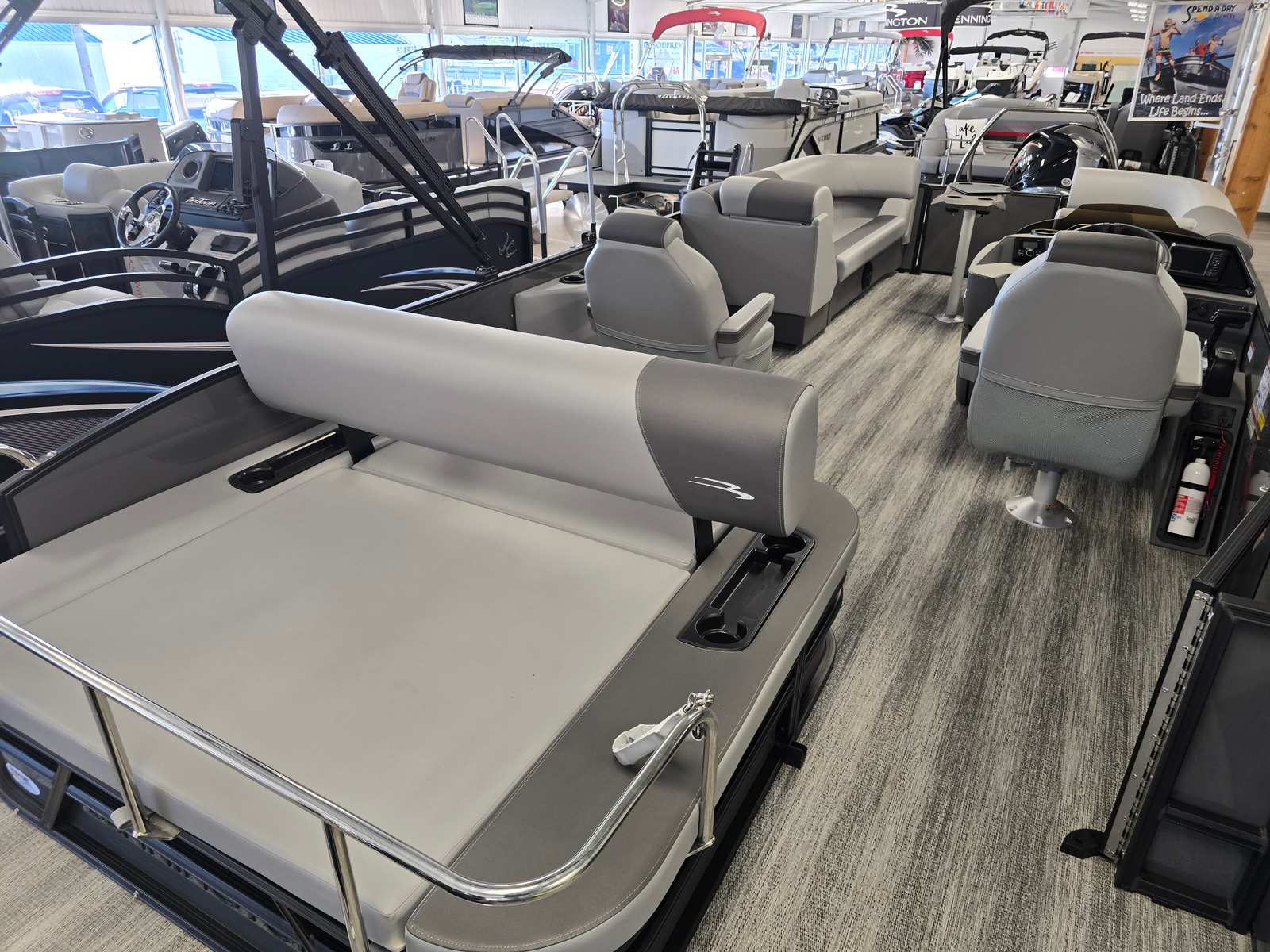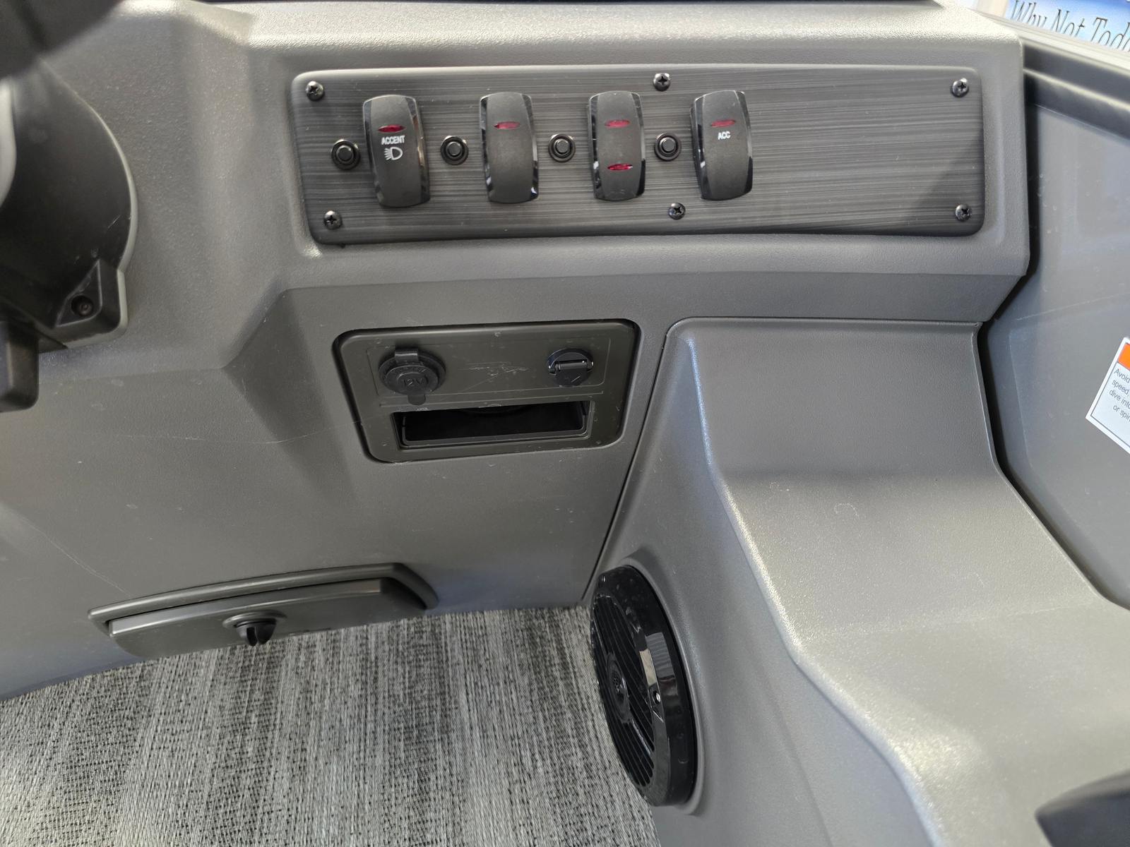 The Bennington 23 SSB SPS Plus is packed with premium features designed to enhance your boating experience. The Serene Soft Touch Vinyl with Simtex accents offers a luxurious and comfortable seating environment, perfect for long days on the water. The Shadow Grey base and Carbon accents create a modern, upscale look that is sure to impress. The single switch battery with fuse provides reliable power management, ensuring your boat’s electrical systems operate smoothly and safely. Blackout logos add a touch of elegance, while the smooth Ocean Blue accent brings a refreshing pop of color to the overall design.
