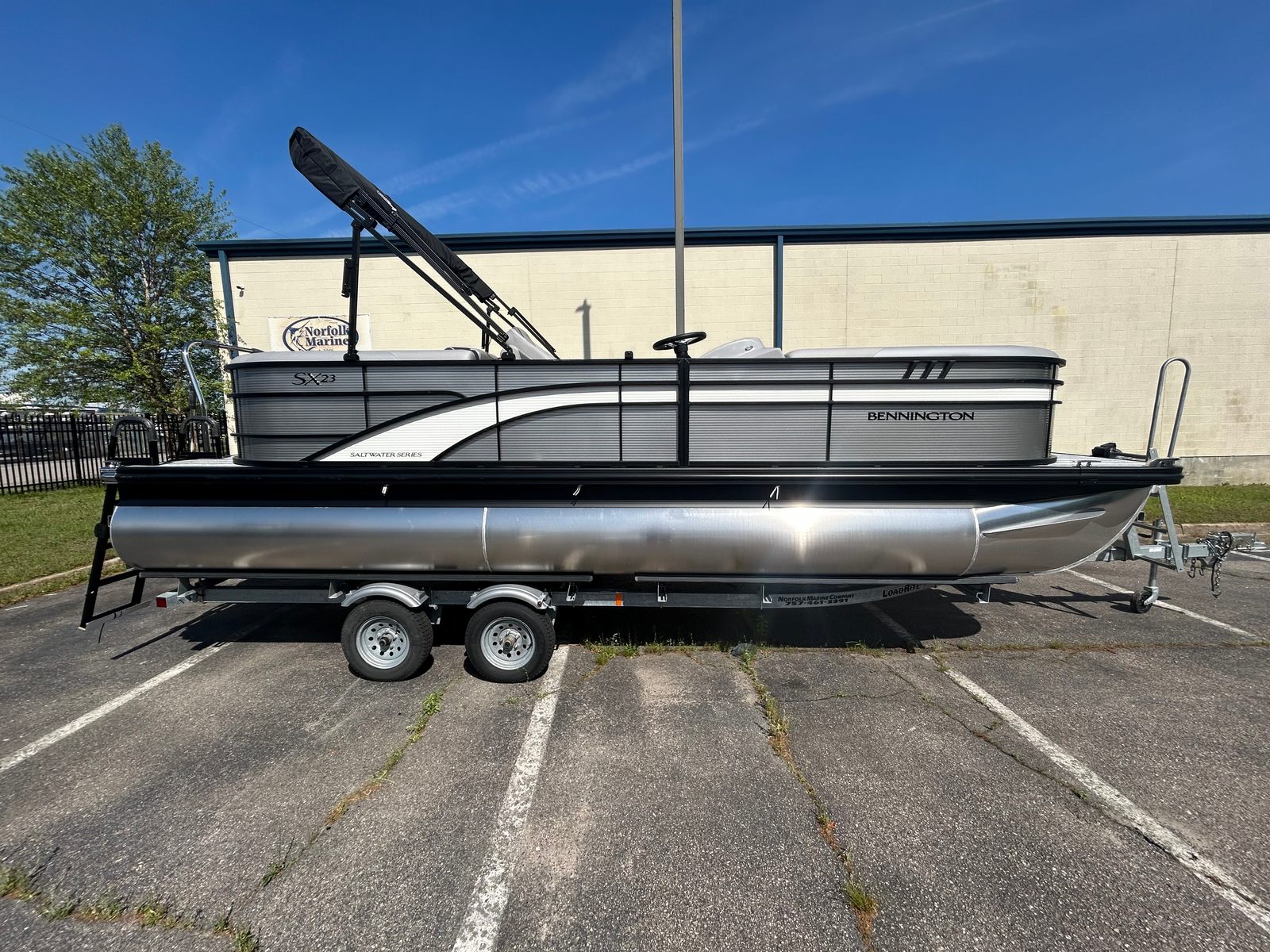 The 2025 Bennington 23 Sxsr SPS Pontoon is a brand-new model that measures just under 24 feet in length, offering ample space for family and friends to relax and enjoy the water. The modern design is complemented by a Metallic Silver panel and Blackout Logos, giving this pontoon a sophisticated and contemporary look that will turn heads at any marina or lakeside gathering. As part of the renowned Bennington lineup, this pontoon boat combines quality craftsmanship with innovative engineering, ensuring a reliable and enjoyable boating experience for years to come.