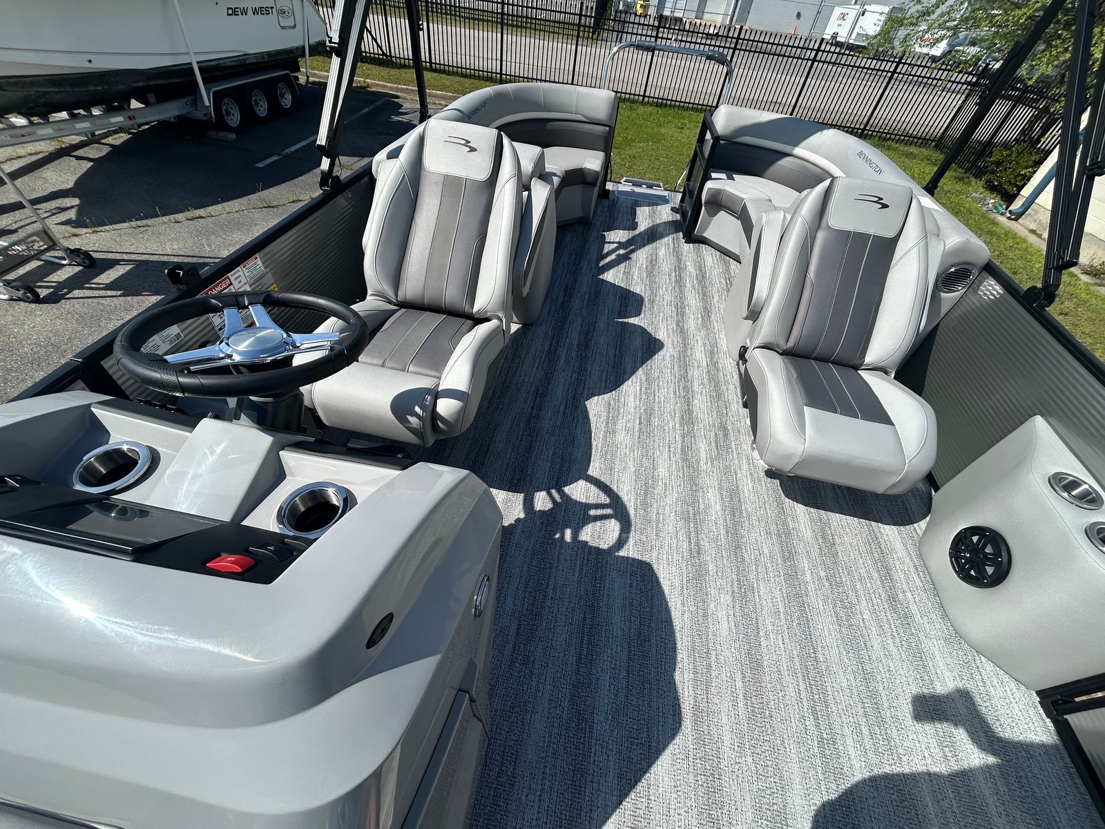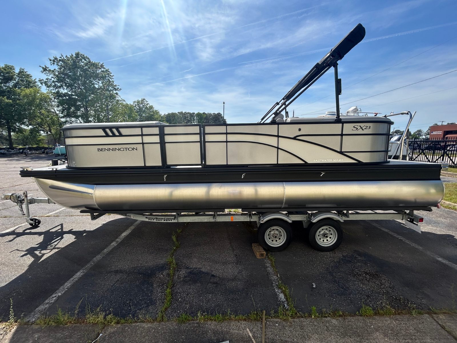 In addition to its recreational appeal, the Bennington 23 Sxsr SPS Pontoon offers practical benefits that make ownership a breeze. The integrated steering system and responsive engine make docking and maneuvering simple, even for less experienced boaters. The efficient 200 HP Yamaha 4-stroke engine provides a balance of power and fuel economy, allowing you to spend more time on the water and less time at the fuel dock.Storage is thoughtfully integrated throughout the boat, ensuring that your gear, snacks, and personal items are always within reach but neatly stowed away. The durable construction and quality materials used in the SX Series furniture and Metallic Silver paneling ensure that your pontoon will maintain its beauty and functionality for years to come, even with regular use.