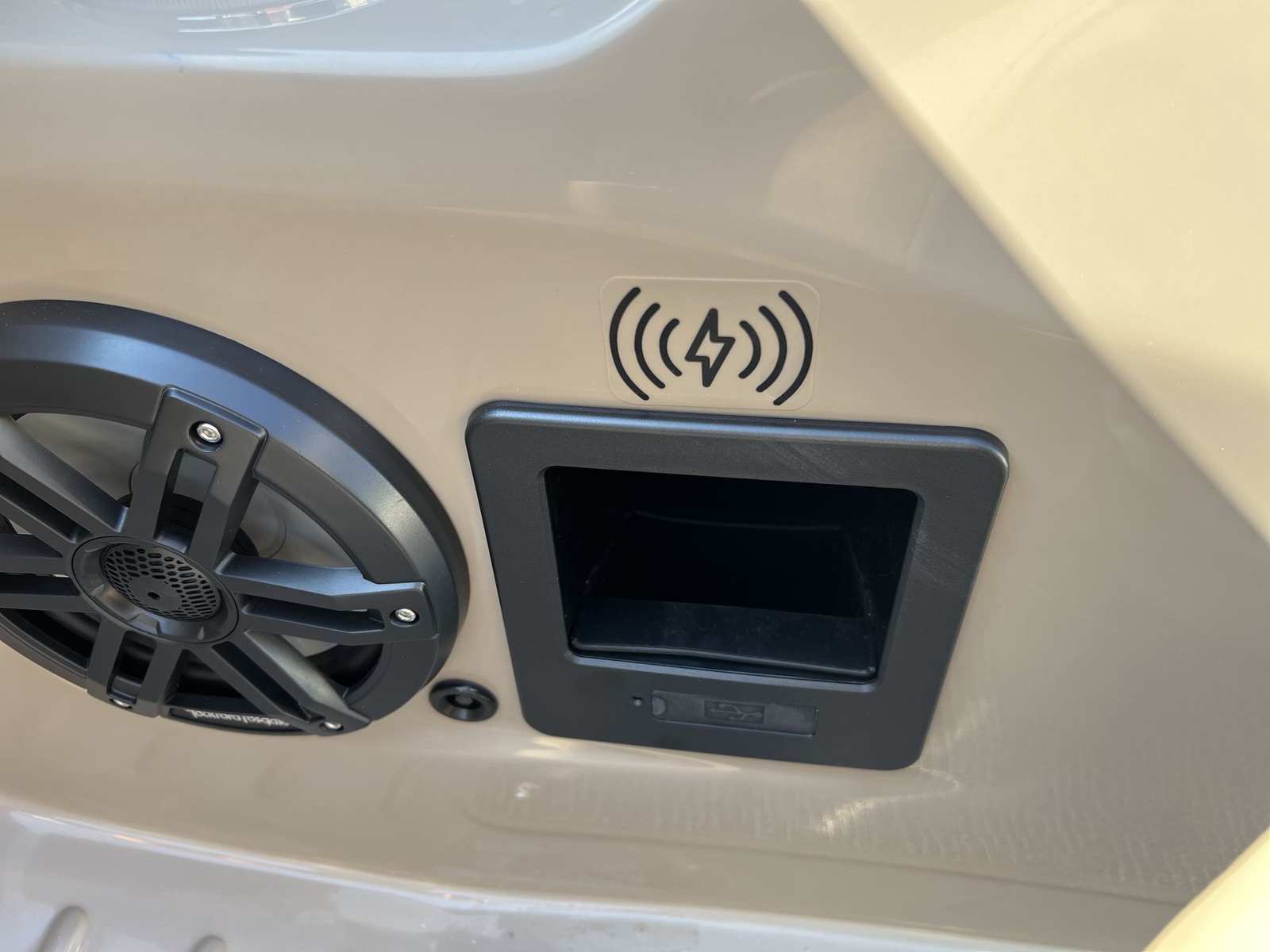 Step aboard the Bennington 24 Lxssb ESP and discover a world of premium features designed to enhance your boating experience. Accent lighting and exterior side lighting create a vibrant atmosphere for evening cruises, while blackout logos add a touch of modern elegance to the boat’s exterior. The elevated console platinum offers superior visibility and ergonomic control, ensuring the captain’s comfort and convenience.Inside, the interior accent of perforated metallic carbon and the Zebrawood matte beige finish deliver a sophisticated and inviting ambiance. The Rockford Fosgate 10" subwoofer and amplifier with a custom enclosure upgrade provide exceptional sound quality, transforming your outings into memorable events with rich, immersive audio. Every detail of this Bennington boat for sale is crafted to impress, from the sleek lines to the luxurious finishes.