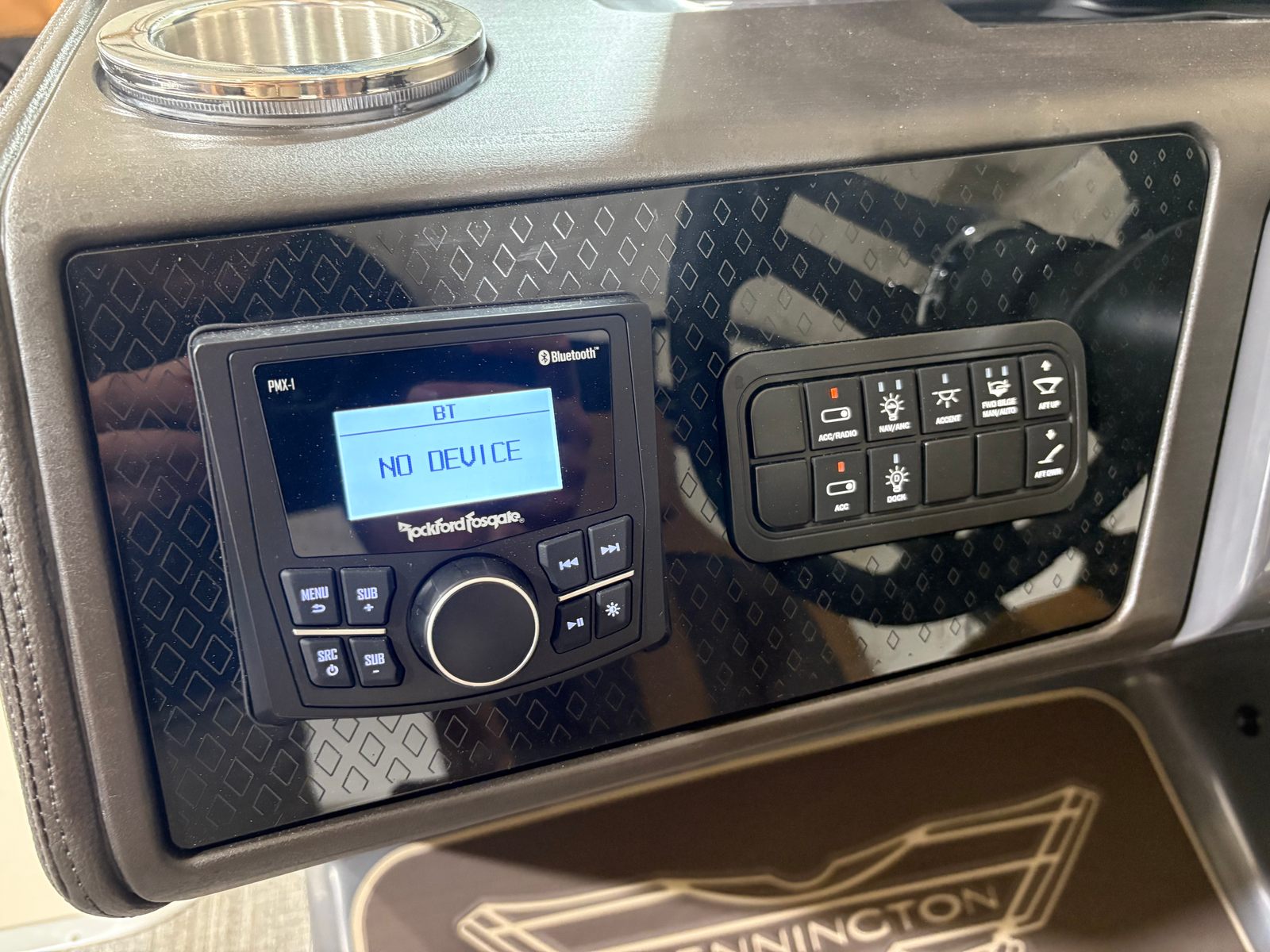 The Bennington 24 MSB ESP is packed with special features that set it apart from other pontoon boats for sale. The electric power top curved Bimini (12B S/M Blk) provides convenient shade and protection from the sun, while the midnight black canvas adds a touch of sophistication to the overall aesthetic. Aft pop-up cleats make docking and securing the boat a breeze, enhancing both safety and convenience. The RGB Control M Series allows you to customize the onboard lighting to match your mood or occasion, creating a vibrant atmosphere for evening cruises or celebrations.Entertainment is at the forefront with Rockford Fosgate M1 lighted speakers, delivering high-quality sound and immersive audio experiences. The 7" Vivid UX touchscreen display puts navigation and system controls at your fingertips, ensuring that every aspect of your journey is easily managed. The Blackout Luxe Package adds a bold, modern look, making this Bennington boat for sale a true head-turner on the water.