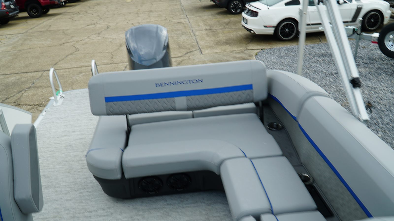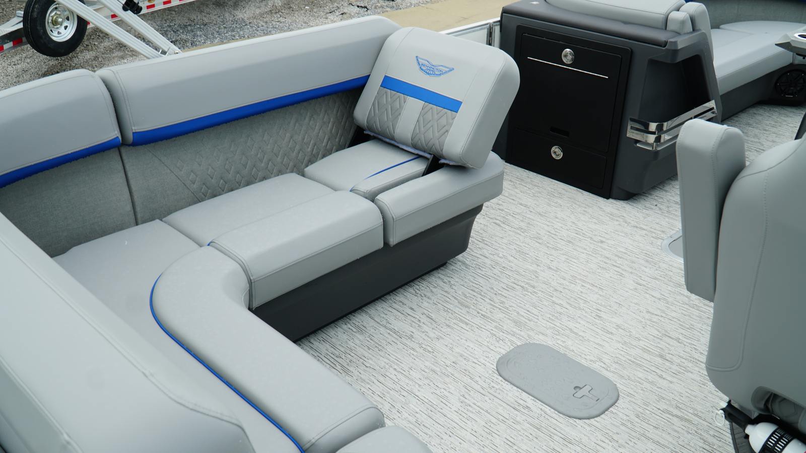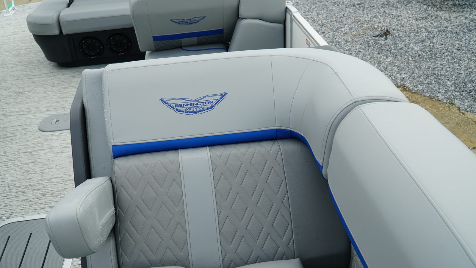 The Bennington 24 MSB ESP is loaded with features designed to enhance your on-water experience. The dual switch battery system with fuse provides peace of mind and reliable power management, ensuring your boat is always ready for action. Toekick lights (2-62") add a touch of ambiance and safety during evening cruises, creating a welcoming atmosphere for you and your guests.For music lovers, the Rockford Fosgate M2 Speaker Amplifier Upgrade and six Rockford Fosgate M1 Lighted Speakers deliver crystal-clear sound and vibrant lighting, transforming your pontoon into a floating entertainment hub. The elevated console with Pocket Mythos offers enhanced visibility and ergonomic controls, while the base furniture from the M Series ensures comfort and style throughout the deck. The elegant Zebrawood Matte Slate accents add a sophisticated touch, making this pontoon boat as visually appealing as it is functional.