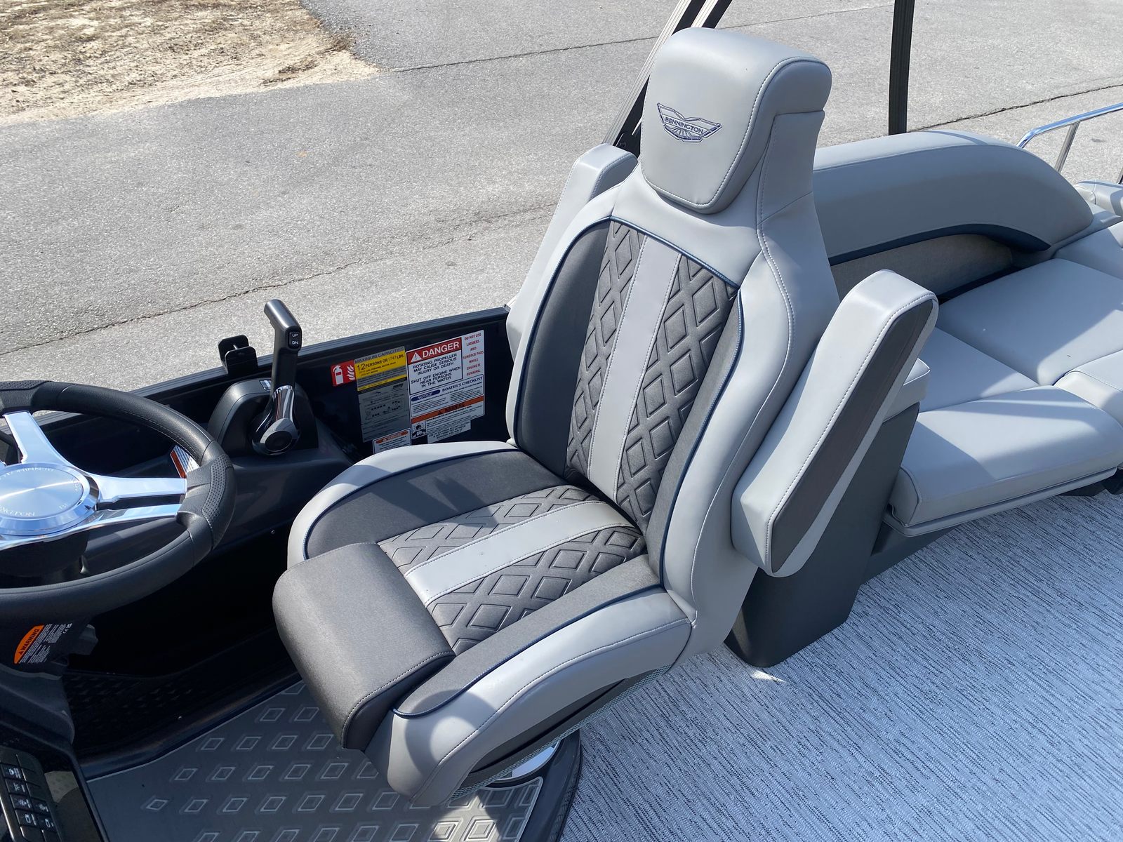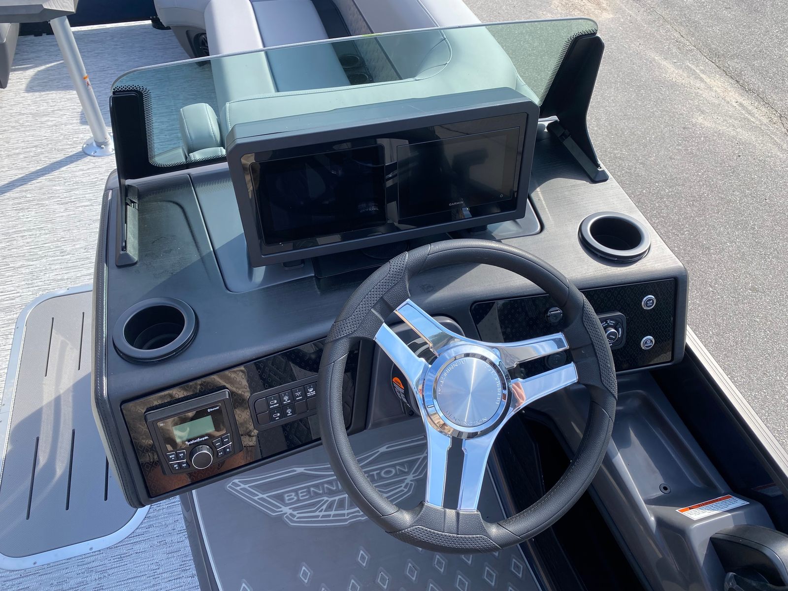 The Bennington 24 MSB SPS is loaded with special features that enhance both its functionality and its appeal. The Yamaha F200XD engine is complemented by a single switch battery system, ensuring reliable power management and easy operation. The RGB Control M Series lighting system allows you to customize the boat’s ambiance with vibrant, multi-color illumination, while exterior side lighting and toekick lights (2-62") add a touch of elegance and safety during evening cruises.For music lovers, the Rockford Fosgate M1 lighted speakers provide premium sound quality and visual flair, creating the perfect soundtrack for your adventures. The elevated console with pocket Mythos offers a commanding view and convenient storage, while the base furniture M Series and Zebrawood Matte Slate finishes deliver a sophisticated and comfortable environment for all passengers. Every detail has been thoughtfully designed to maximize enjoyment and convenience, making this pontoon a true standout in its class.