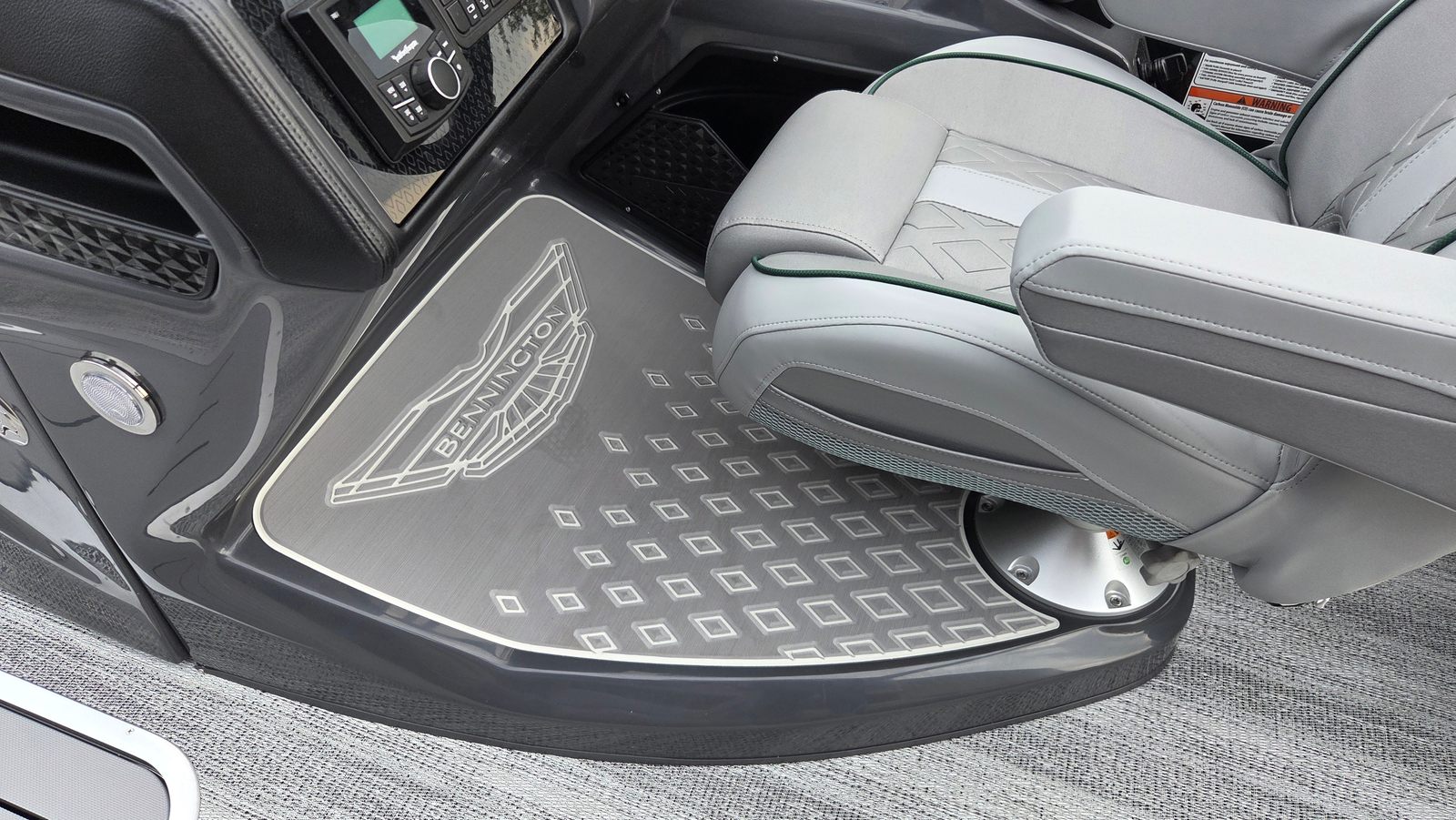 The Bennington 24 MSL SPS Plus is loaded with features that elevate your on-water experience. The RGB Control M Series lighting system allows you to set the perfect mood, while the Toekick Lights (2-62") add a subtle, stylish glow for evening cruises. Entertainment is taken to the next level with six Rockford Fosgate M1 Lighted Speakers, delivering crystal-clear sound and vibrant illumination for your favorite playlists. Illuminated cupholders keep your beverages secure and visible, even after sunset, and the Elevated Console with Pocket Mythos provides a commanding view and convenient storage for your essentials. The addition of lumbar lighting enhances comfort and ambiance, making every seat the best in the house. For sun protection and style, the Bimini - Curved M/LXS No Light Blk offers ample shade without compromising the boat’s sleek profile.