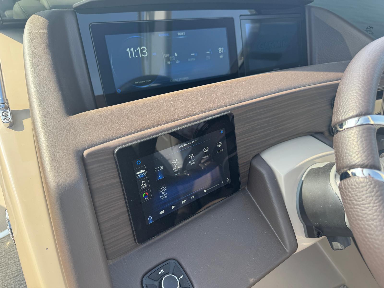 Step aboard the Bennington 25 Qfbwa ESP and discover a world of luxury and innovation. The special features of this pontoon boat are designed to enhance your time on the water, offering both style and functionality. The Removable Flag Pole with American Flag adds a patriotic touch, perfect for holiday celebrations or everyday pride. Enjoy a vibrant atmosphere with RGB Toe Kick Lighting and Illuminated Cupholders, creating a dynamic ambiance for evening cruises and social gatherings.Underwater Lighting not only adds a dramatic flair but also improves visibility during nighttime adventures. The Blackout Logos give the boat a sleek, modern look, while the Panel - Smooth Metallic Sorre finish provides a sophisticated aesthetic that turns heads at every marina. For music lovers, the Rockford Fosgate audio system is a true highlight. Featuring 6.5" M2 Speakers, 8" M2 Speakers, a powerful 10" M2 Subwoofer, and Dual PM Punch Amplifier Upgrade, this setup delivers crystal-clear sound and deep bass throughout the boat. The Rockford Fosgate PMX-1R Head Unit Remote with Sirius Satellite Radio ensures you have access to your favorite tunes and channels, making every journey more enjoyable.