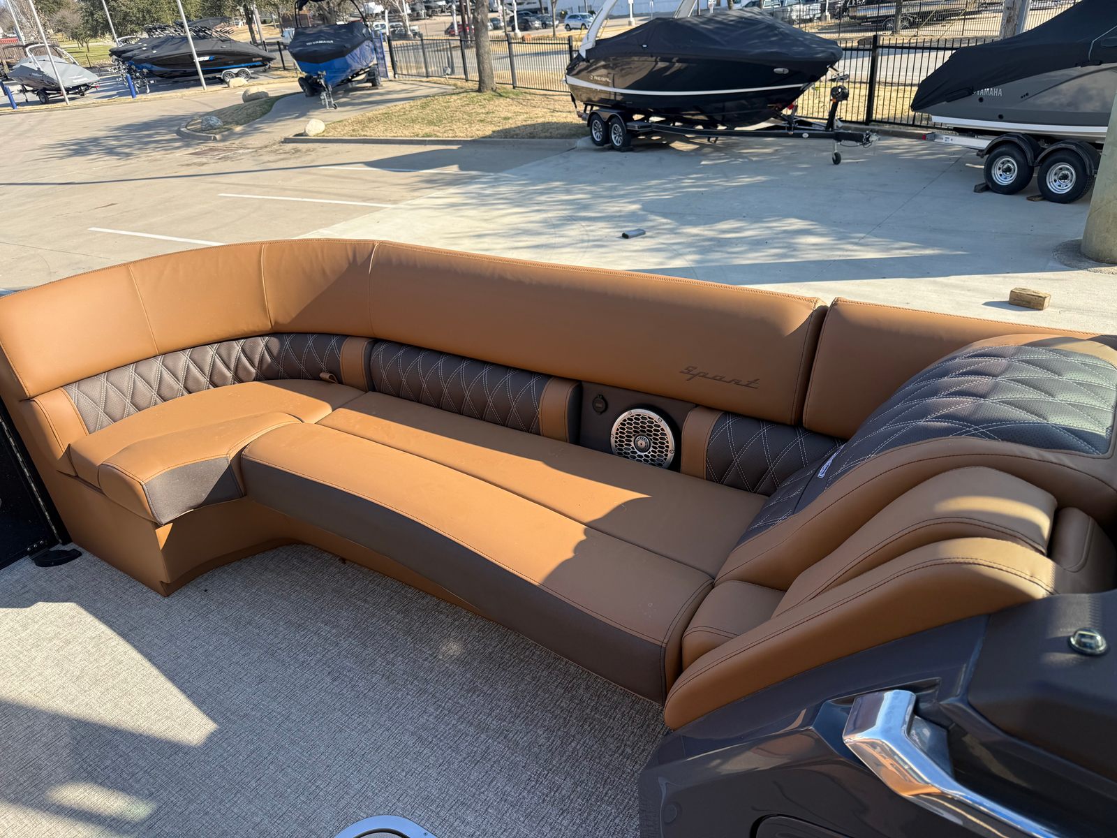 Power and precision define the Bennington 25 Qsba ESP. Equipped with a robust 350-horsepower engine, this pontoon boat delivers exhilarating acceleration and smooth cruising, making it perfect for both leisurely rides and high-energy water sports. The advanced ESP (Elliptical Sport Package) hull design enhances stability and maneuverability, allowing you to navigate tight turns and choppy waters with confidence. Whether you’re towing water toys, racing across the lake, or simply enjoying a sunset cruise, the 25 Qsba ESP’s performance capabilities ensure every outing is a thrill.