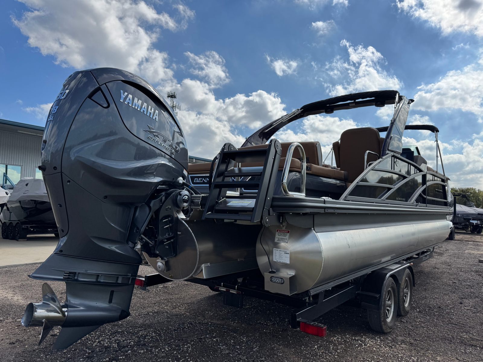 The 2026 Bennington 25 Qsba ESP pontoon boat for sale is a remarkable blend of performance, luxury, and innovation. With its powerful 450 HP Yamaha Offshore engine, integrated steering, and a host of special features including a Power Cladded Sport Arch, illuminated cupholders, underwater lighting, and a state-of-the-art Rockford Fosgate audio system, this Bennington boat for sale offers everything you need for unforgettable adventures on the water.Whether you’re seeking a spacious family cruiser, an entertainment hub, or a stylish escape, the Bennington 25 Qsba ESP delivers on every front. Experience the thrill, comfort, and versatility of this exceptional pontoon boat and make every day on the water a celebration. Contact your local dealer today to learn more about this incredible pontoon and start your journey toward owning the ultimate Bennington boating experience.
