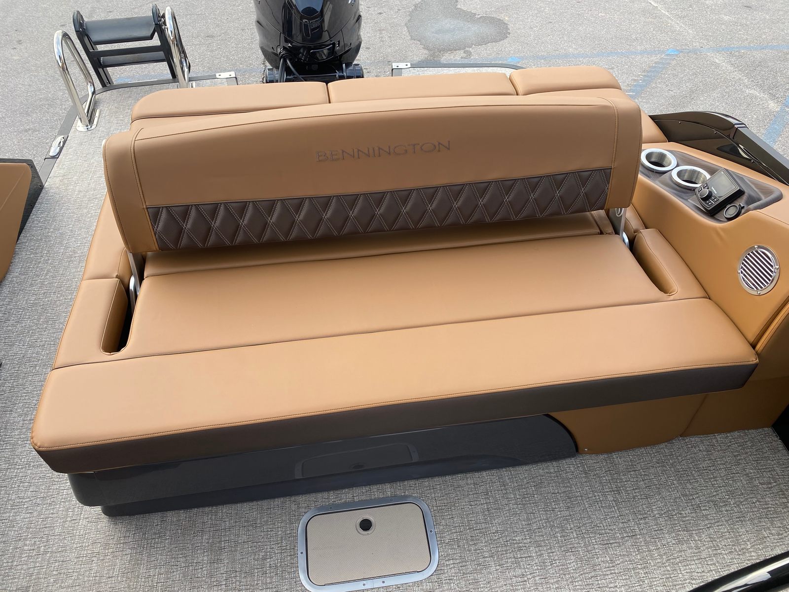 The 2026 Bennington 25 Qxsba ESP pontoon boat is a standout choice for anyone seeking a new pontoon boat for sale that delivers luxury, performance, and versatility. With its powerful Yamaha XF450NSA engine, integrated steering, illuminated cupholders, exterior and underwater lighting, toekick lights, blackout logos, and state-of-the-art Rockford Fosgate audio system, this boat is designed to impress and delight. The elegant Zebrawood Matte Beige interior and perforated espresso accents further enhance its appeal, creating a welcoming space for relaxation and entertainment.Don’t miss the opportunity to own a Bennington boat for sale that sets the standard for modern pontoon boating. Experience the ultimate in comfort, style, and fun on the water—contact your local dealer today to learn more about the Bennington 25 Qxsba ESP and start planning your next adventure.