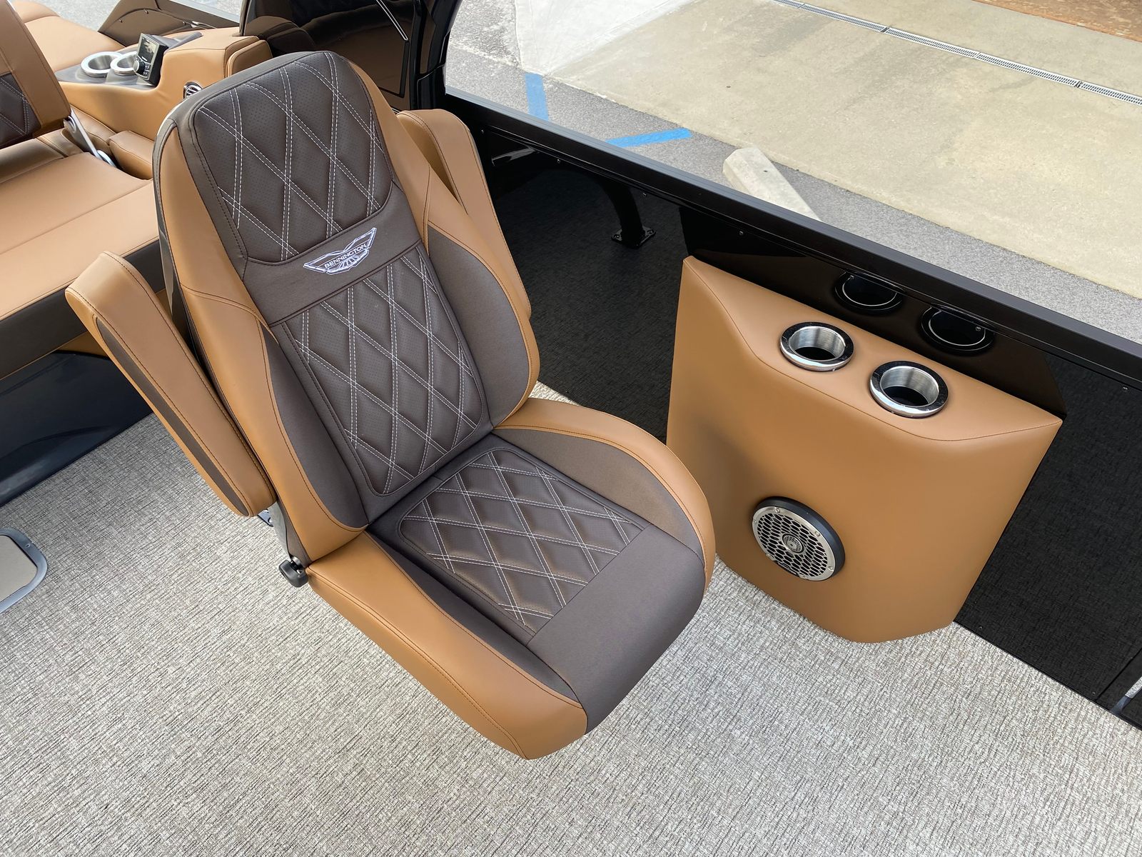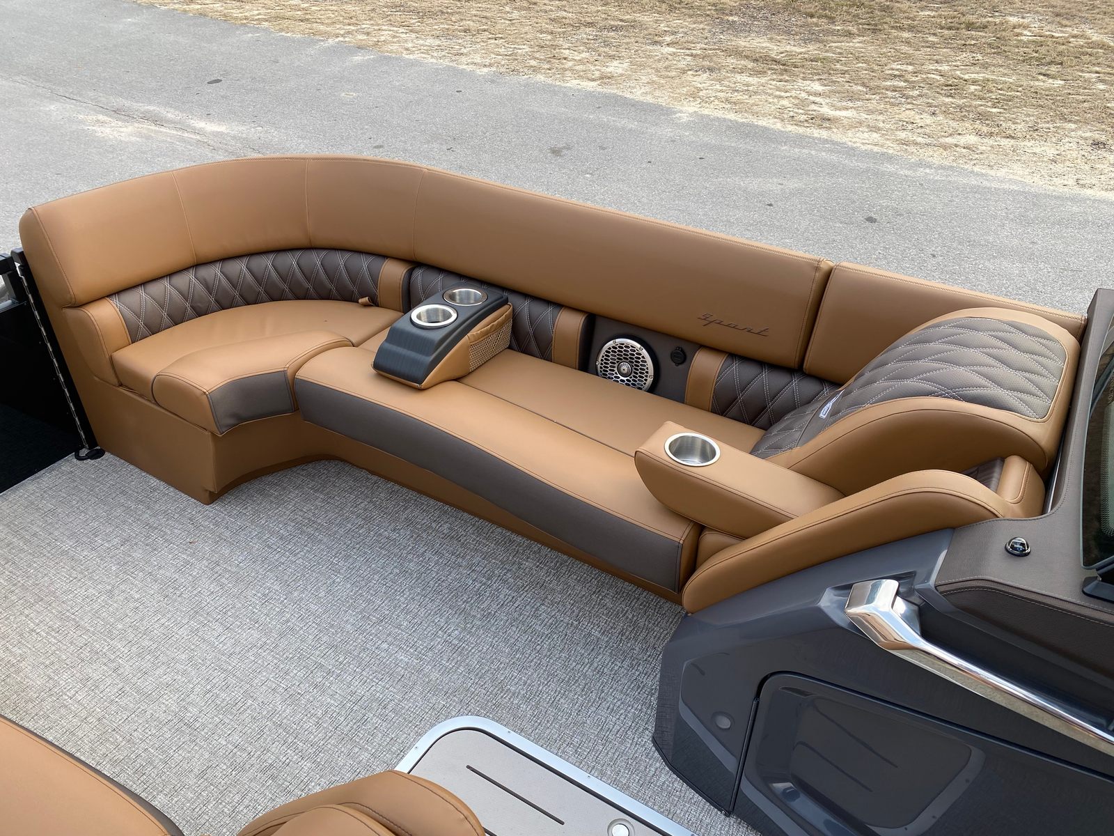Step aboard the Bennington 25 Qxsba ESP and discover a world of premium amenities designed to maximize comfort and enjoyment. Illuminated cupholders add a touch of sophistication to every gathering, while exterior side lighting and underwater lighting create a captivating ambiance for evening cruises. Toekick lights, available in both 41" and 62" configurations, ensure safety and style throughout the deck. The interior boasts Zebrawood Matte Beige finishes and perforated espresso accents, creating a warm and inviting atmosphere that’s perfect for relaxing or entertaining.Music lovers will appreciate the Rockford Fosgate audio system, featuring six 6.5" M2 speakers throughout the boat and two additional speakers on the arch. A powerful 10" M2 subwoofer and PM Punch Amplifier Upgrade deliver crystal-clear sound and deep bass, transforming every outing into a private concert on the water. These features combine to create an immersive environment where you can unwind, celebrate, or simply enjoy the company of loved ones.