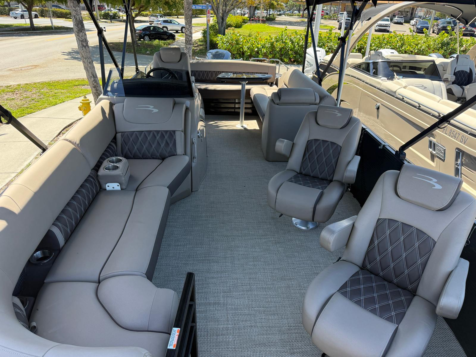 The Bennington 26 Lxsb is designed with both comfort and convenience in mind. Its spacious deck layout provides plenty of room for socializing, sunbathing, or enjoying a picnic on the water. The high-quality materials and thoughtful design elements create an inviting atmosphere, making every trip enjoyable for passengers of all ages. The pontoon’s generous length allows for flexible seating arrangements and easy movement throughout the boat, enhancing the overall experience.This model is equipped with a range of special features that elevate your time on the water. From plush seating to user-friendly controls, every detail is crafted to maximize comfort and ease of use. The sturdy construction and reliable performance make this Bennington boat for sale a smart investment for those who value both style and substance.