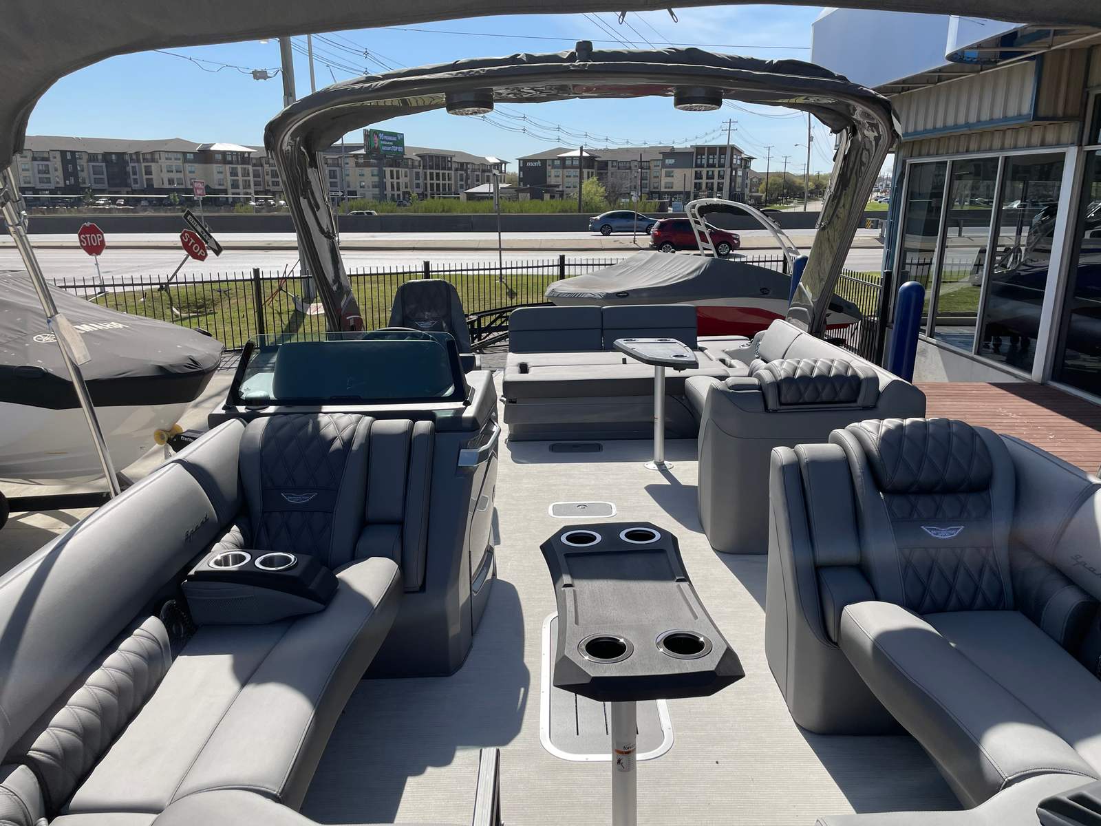 Power and precision are at the heart of the Bennington 27 QSBAX2 ESP. Equipped with twin Yamaha engines delivering a combined 700 horsepower, this pontoon boat offers exhilarating speed and smooth handling. The Yamaha Twin Integrated Steering system provides responsive control, making navigation effortless whether you are cruising at high speeds or maneuvering into a slip. The advanced engineering behind this Bennington boat ensures a stable, comfortable ride, even when the water gets choppy. With this level of performance, you can enjoy thrilling adventures or leisurely cruises with complete confidence.