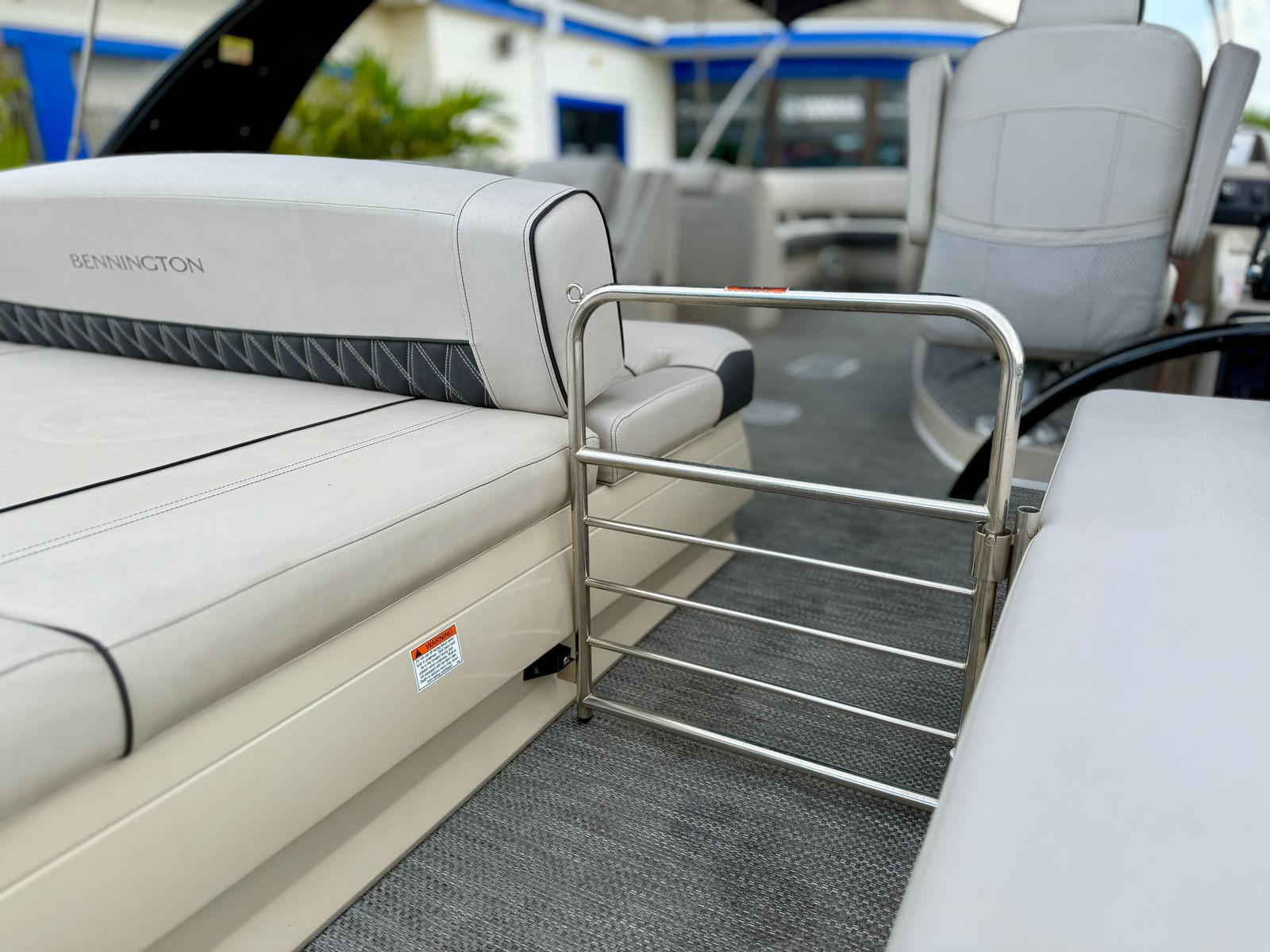 In addition to its recreational benefits, the Bennington 28 QSRFBX1 3T pontoon boat offers a range of practical features that make ownership a breeze. The ample storage compartments provide plenty of space for life jackets, water toys, and other essentials, keeping the deck clutter-free and organized. The boat’s design makes docking and maneuvering simple, even for those new to boating, while the efficient engine ensures you can enjoy longer days on the water without frequent refueling stops.The durable construction and quality materials used in this Bennington pontoon ensure that it can withstand the rigors of regular use, providing years of reliable performance. The easy-to-clean surfaces and low-maintenance design make it simple to keep your boat looking its best, so you can spend more time enjoying the water and less time on upkeep.