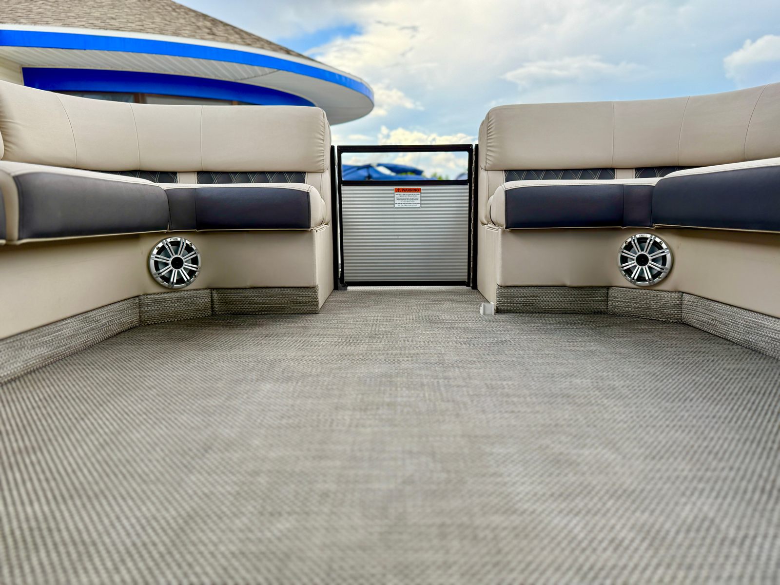 Powering this Bennington pontoon is a robust single engine with an impressive 425 horsepower, delivering smooth and reliable performance on the water. With only 298 engine hours, this boat has plenty of life left for countless adventures. The powerful engine ensures quick acceleration, effortless cruising, and the ability to handle a variety of water conditions with confidence. Whether you are towing water toys, exploring new coves, or simply enjoying a leisurely cruise, the performance of this Bennington boat for sale will exceed your expectations.