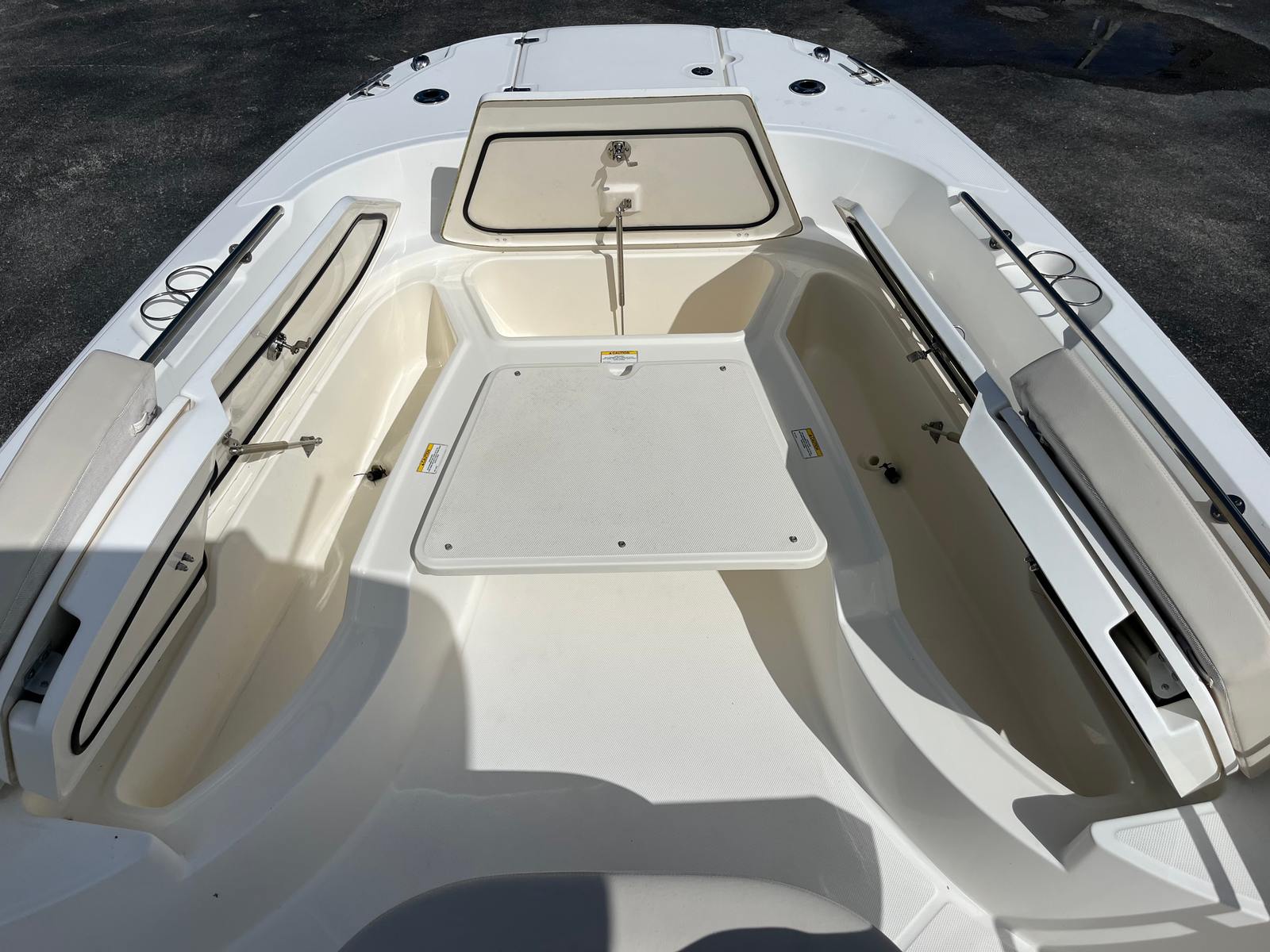 Step aboard and you’ll immediately notice the thoughtful layout and spacious seating throughout. The bow features comfortable lounge seating perfect for relaxing or entertaining, while the aft cockpit provides plenty of room for fishing or socializing. A large center console with head compartment adds convenience for full days on the water. In Add in the already installed, much desired, powerpole SHALLOW WATER ANCHOR and you have the complete package.