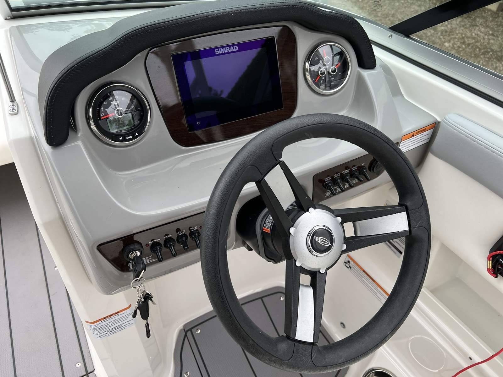 The 2023 Chaparral 23 SSI is a 23-foot bowrider that stands out for its sleek design and impressive craftsmanship. As a used boat in excellent condition, it offers the perfect opportunity to own a nearly-new vessel with only 12 engine hours, ensuring you get the benefits of a lightly used model at a competitive price. The Chaparral 23 SSI is renowned for its spacious layout, modern amenities, and versatile performance, making it a top choice among bowrider enthusiasts.