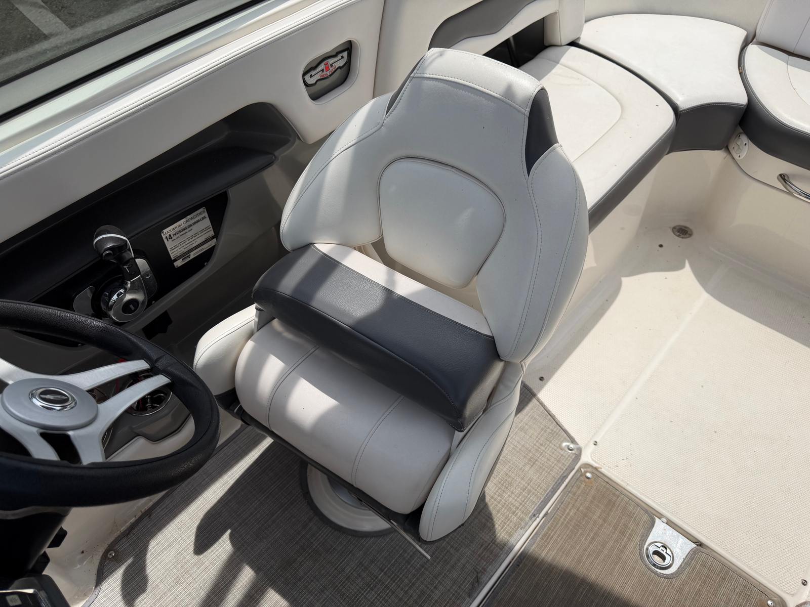 Powering the Chaparral 246 SSI is a robust single engine delivering an impressive 300 horsepower. This setup ensures exhilarating acceleration, smooth cruising, and reliable handling, making it easy to navigate both calm lakes and choppier coastal waters. The 246 SSI’s responsive steering and well-balanced hull design contribute to a stable and enjoyable ride, whether you’re towing water toys, slicing through waves, or simply cruising at sunset. With 181 engine hours, this bowrider boat for sale has been well-maintained and is ready to deliver many more seasons of fun and excitement.