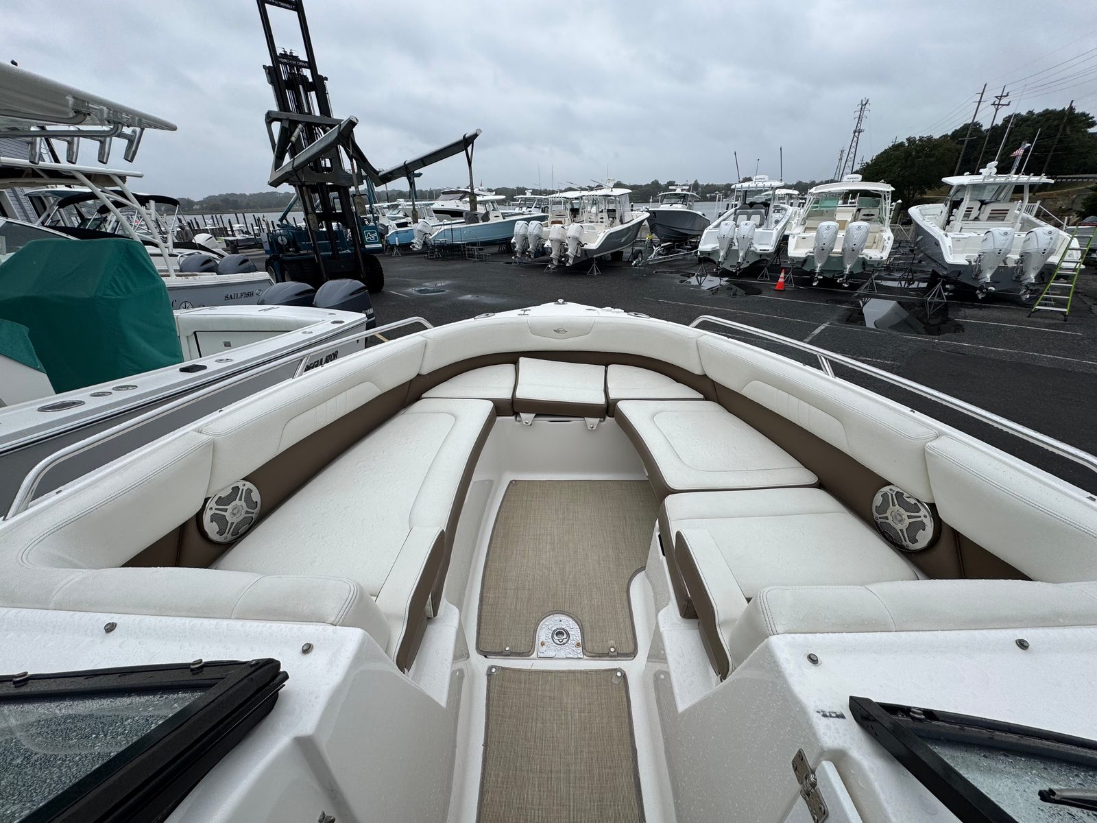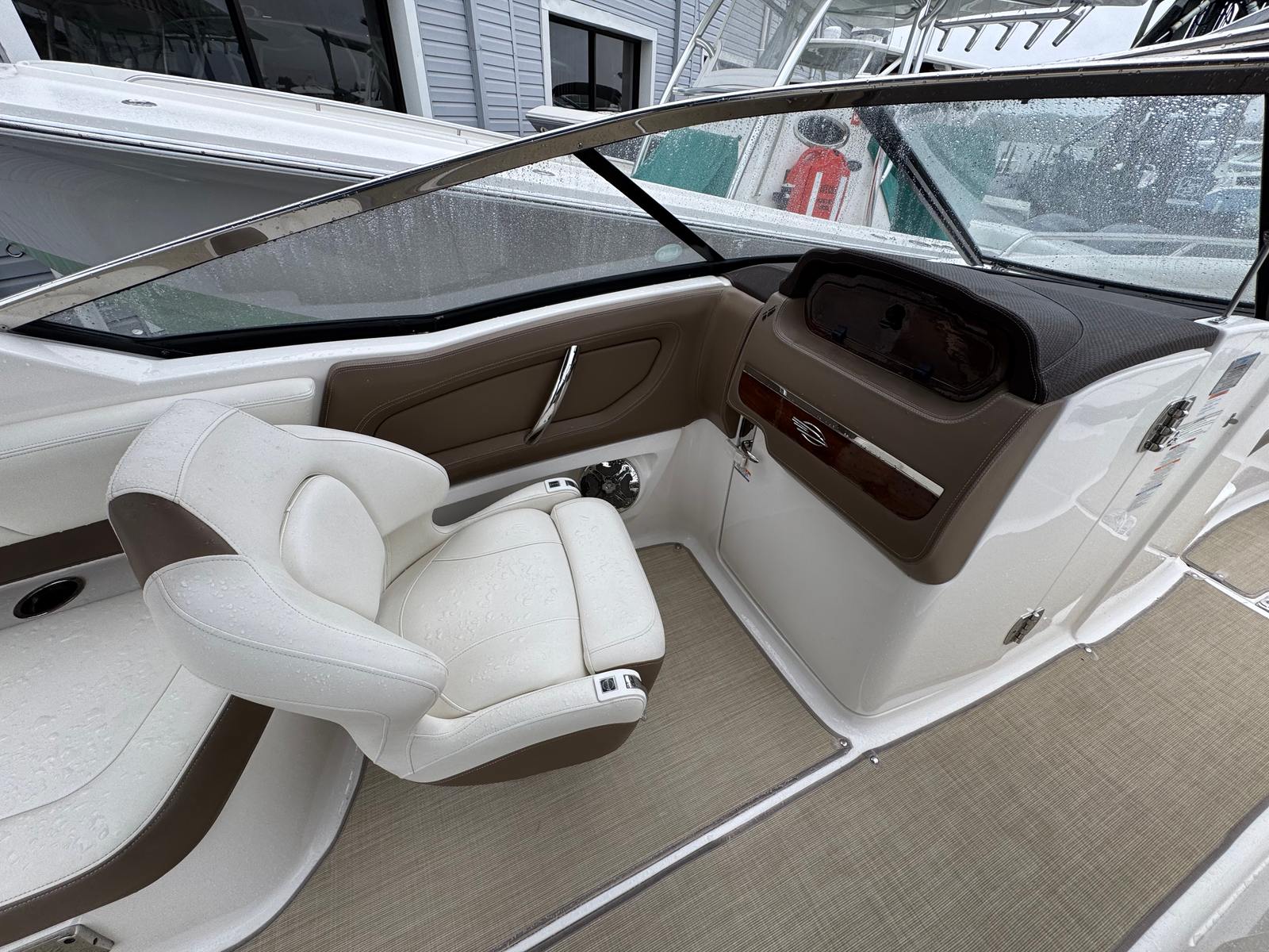 The Chaparral 270 SSI is packed with features that enhance your time on the water. Its spacious bow seating area invites guests to stretch out and soak up the sun, while the wraparound cockpit seating provides plenty of room for socializing and relaxation. The helm is thoughtfully designed with intuitive controls and clear instrumentation, ensuring that captains of all experience levels feel confident at the wheel. The 27-foot length offers generous storage options, making it easy to stow gear, water toys, and personal items for a clutter-free experience. The boat’s layout is optimized for both comfort and functionality, with easy access to all areas and a design that encourages conversation and connection.