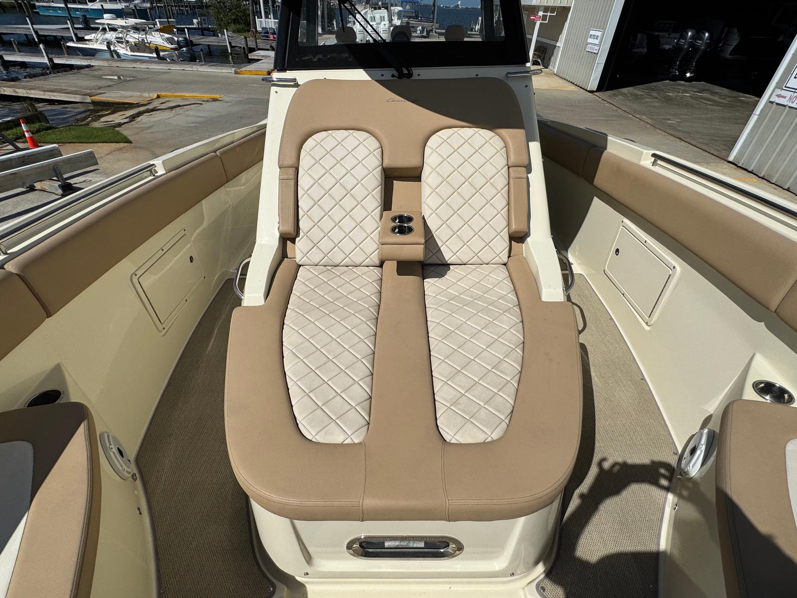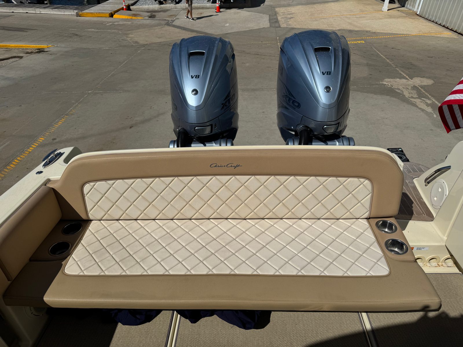 The Chris-Craft Catalina 34 is designed with the discerning boater in mind, offering a host of features that enhance comfort, convenience, and enjoyment on the water. The spacious center console layout provides easy access to all areas of the boat, making it perfect for socializing, fishing, or simply relaxing in the sun. The high-quality materials and attention to detail are evident throughout, from the stylish upholstery to the thoughtfully arranged seating areas. With its generous length and well-planned deck space, the Catalina 34 offers plenty of room for guests, gear, and all your boating essentials.