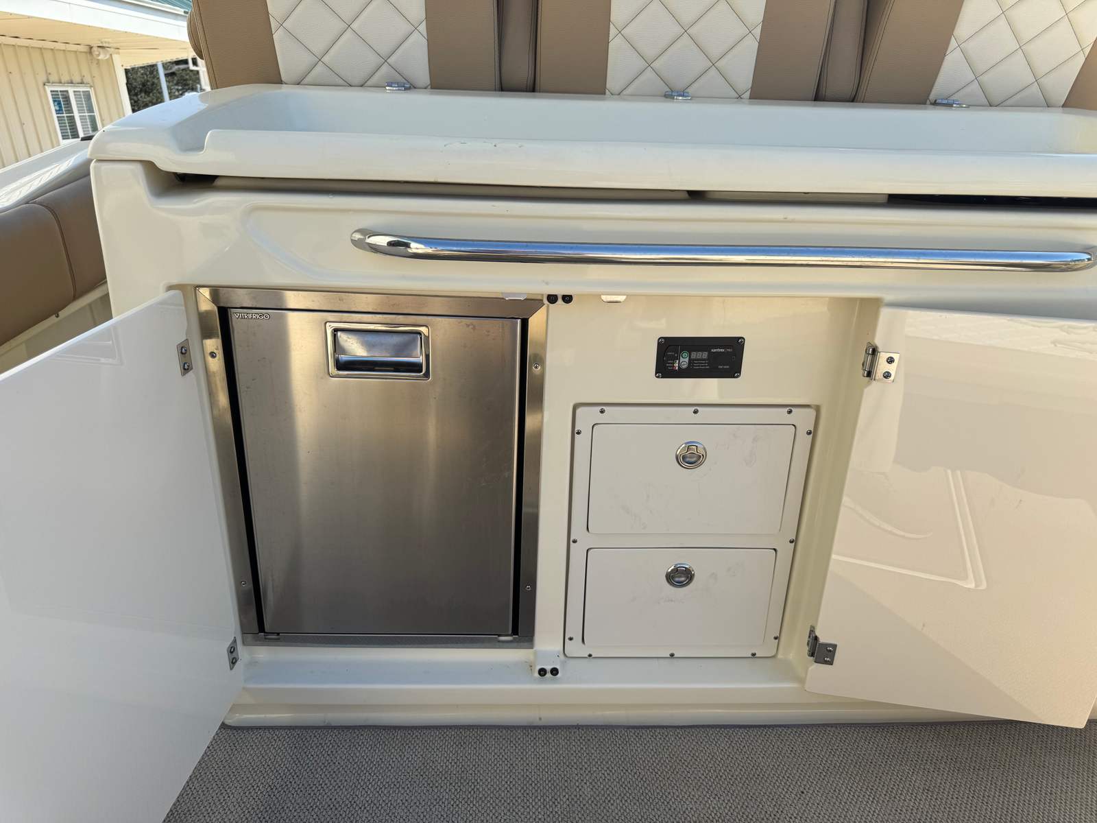 Power and performance are at the heart of the Chris-Craft Catalina 34. Equipped with twin engines that deliver a combined 850 horsepower, this center console boat is built for speed, agility, and reliability. The engines have only 200 hours, ensuring they are in excellent working order and ready for many more adventures. The Catalina 34’s powerful propulsion system allows for smooth acceleration, responsive handling, and impressive top speeds, making it ideal for everything from leisurely cruises to thrilling offshore excursions. Whether you’re navigating choppy waters or gliding across calm bays, this Chris-Craft boat for sale offers a ride that is both exhilarating and comfortable.