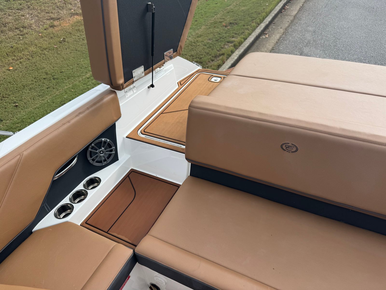 The Cobalt CS23 Bowrider is designed with both comfort and functionality in mind. Its spacious layout accommodates guests with ease, providing plenty of seating and open areas for relaxation and entertainment. The ergonomic helm puts all controls within easy reach, allowing the captain to focus on the fun while maintaining full command of the vessel. The bow seating area is perfect for sunbathing or enjoying the breeze, while the aft section offers additional space for lounging or preparing for water sports. Every detail of the CS23 reflects Cobalt’s commitment to quality and craftsmanship, from the premium upholstery to the durable construction.