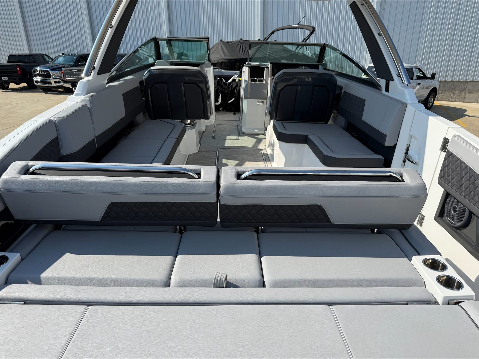 Under the hood, the Cobalt R33 boasts twin engines, delivering a combined 760 horsepower. This powerful setup ensures exhilarating acceleration, smooth cruising, and responsive handling, whether you’re navigating coastal waters or exploring inland lakes. The dual-engine configuration not only enhances performance but also provides added reliability and control, making every journey both thrilling and secure. With only 91 engine hours, these engines are primed for many more seasons of enjoyment, offering peace of mind and outstanding value for those seeking a high-performance Cobalt boat for sale.