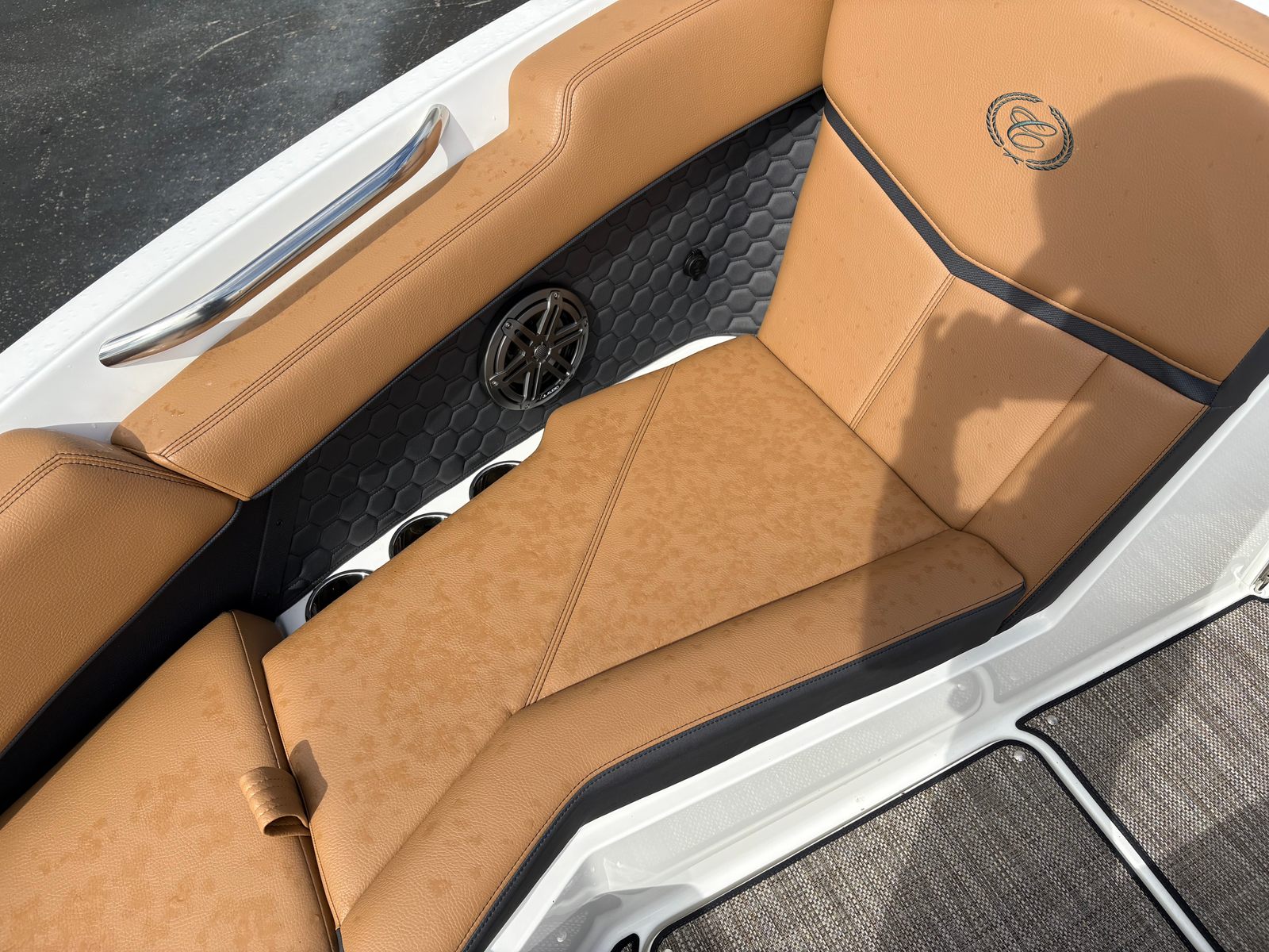 The 2025 Cobalt R4 Surf is designed with the modern boater in mind, offering a range of features that enhance both functionality and enjoyment. The spacious bowrider layout provides comfortable seating for guests, encouraging social interaction and relaxation. The innovative hull design ensures a smooth, dry ride, while the advanced surf system allows for customizable wakes, perfect for wakeboarding, surfing, or tubing. The R4 Surf’s ergonomic helm puts all controls within easy reach, giving the captain complete command of the boat’s performance and features. Every detail, from the premium upholstery to the intuitive layout, reflects Cobalt’s commitment to quality and user-friendly design.