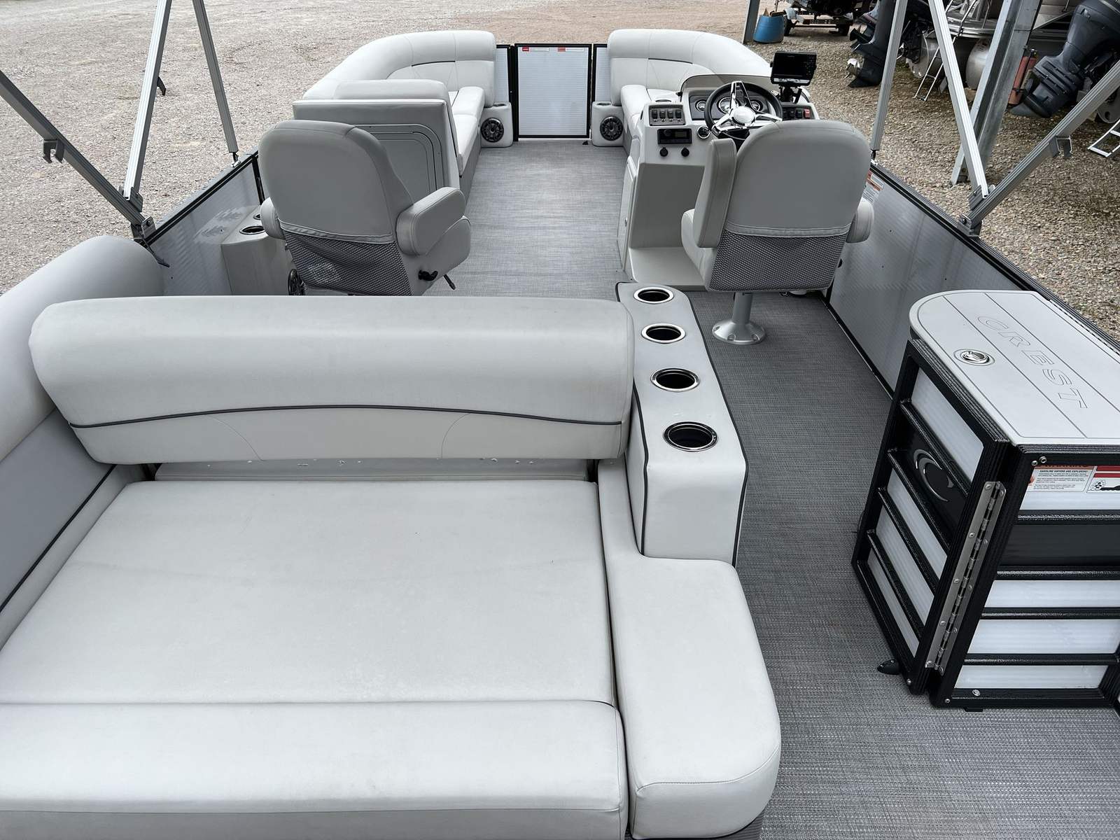 This Crest pontoon boat for sale is as practical as it is fun. The generous storage compartments keep your belongings organized and out of the way, while the intuitive helm makes navigation a breeze. Docking and maneuvering are simplified by the boat’s responsive handling, allowing you to explore new destinations with confidence. The efficient engine helps you make the most of your time on the water, offering a balance of power and fuel economy.The Crest Classic 240 LX is also easy to maintain, thanks to its durable construction and quality materials. Whether you are a seasoned boater or new to the world of pontoons, you will appreciate the straightforward operation and low-maintenance design. This used Crest boat for sale is ready to deliver years of reliable service, making it a smart investment for anyone who loves spending time outdoors.