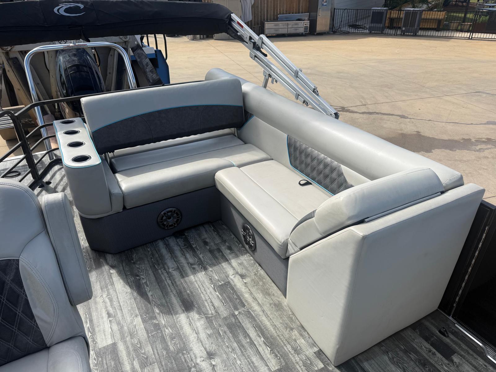 The Crest Classic DLX 240 is packed with features that enhance comfort, convenience, and enjoyment on every outing. Its spacious deck layout provides plenty of seating, allowing everyone on board to relax and soak up the sun. The pontoon’s design prioritizes both style and functionality, with high-quality materials and attention to detail evident throughout. The 25-foot length offers generous space for movement, making it easy to host gatherings or enjoy quiet moments on the water.This Crest boat for sale is equipped with a range of amenities designed to make your time on board as enjoyable as possible. From plush seating to ample storage compartments, every detail is crafted with your comfort in mind. The pontoon’s layout is perfect for entertaining, with plenty of room for coolers, snacks, and all the essentials you need for a day of fun. The Classic DLX 240’s thoughtful design ensures that every trip is both relaxing and memorable.