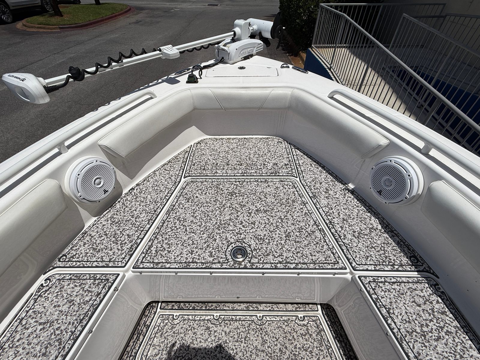 This boat is well equipped with an I Pilot trolling motor, a 12" Garmin GPS and bottom machine, closed dome radar, VHF and a full Seadeck Flooring! This boat is also equipped with a JL Audio Speaker System and Fusion Stereo head unit. It also is equipped with an 8' Powerpole Blade and underwater lights! This boat is fully equipped and ready for her next owner!