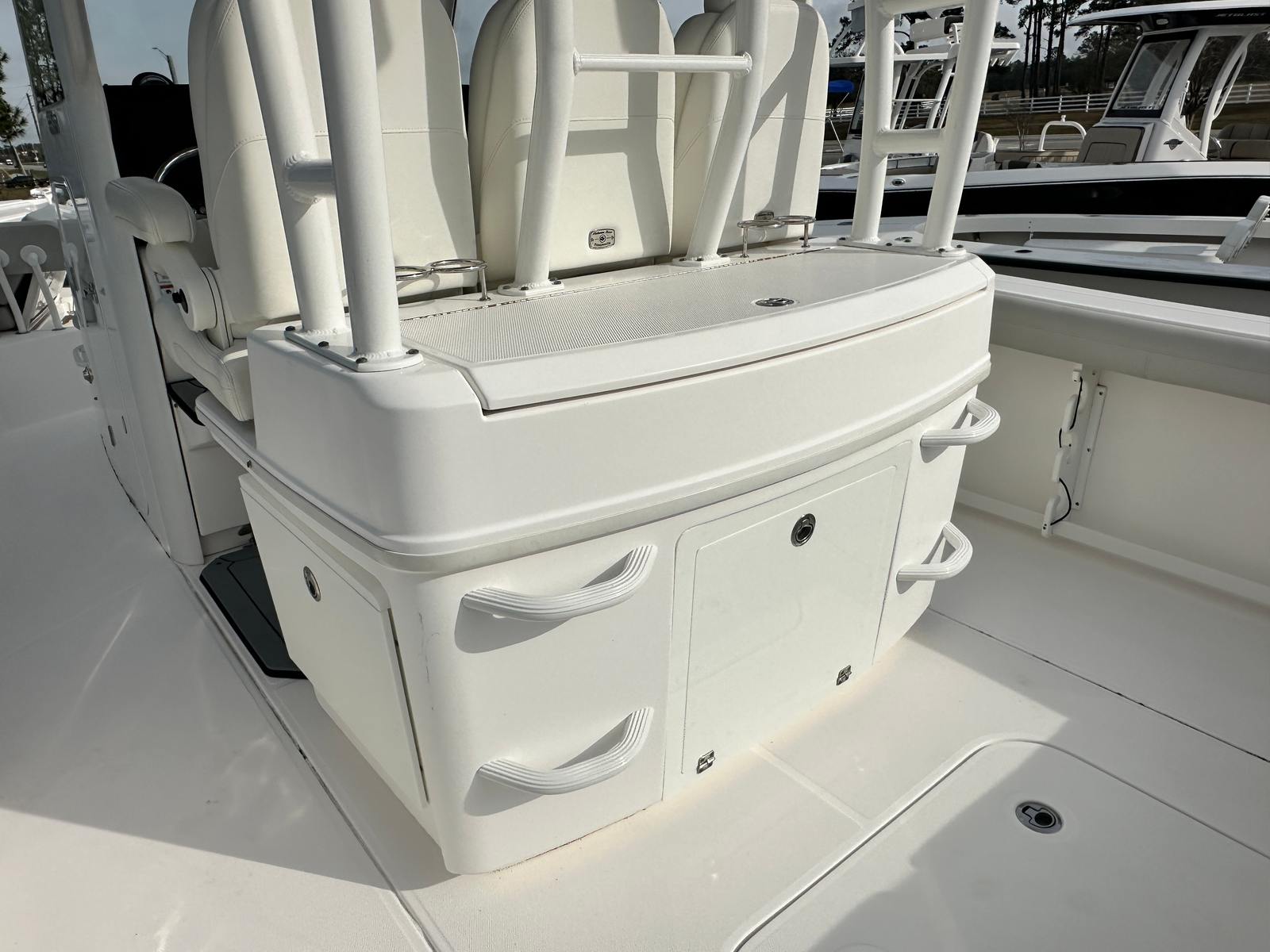 When it comes to performance, the Everglades 335 CC truly excels. Powered by a formidable 850 horsepower engine, this Center Console boat is engineered for exhilarating speed and smooth handling. Whether you are cruising along the coastline, heading offshore for a day of fishing, or simply enjoying a leisurely ride, the 335 CC responds with impressive agility and power. The robust engine ensures you have the thrust needed to tackle a variety of conditions, while the advanced hull design provides stability and confidence at any speed. For those who crave excitement and reliability, this Everglades boat for sale delivers a performance that is second to none.