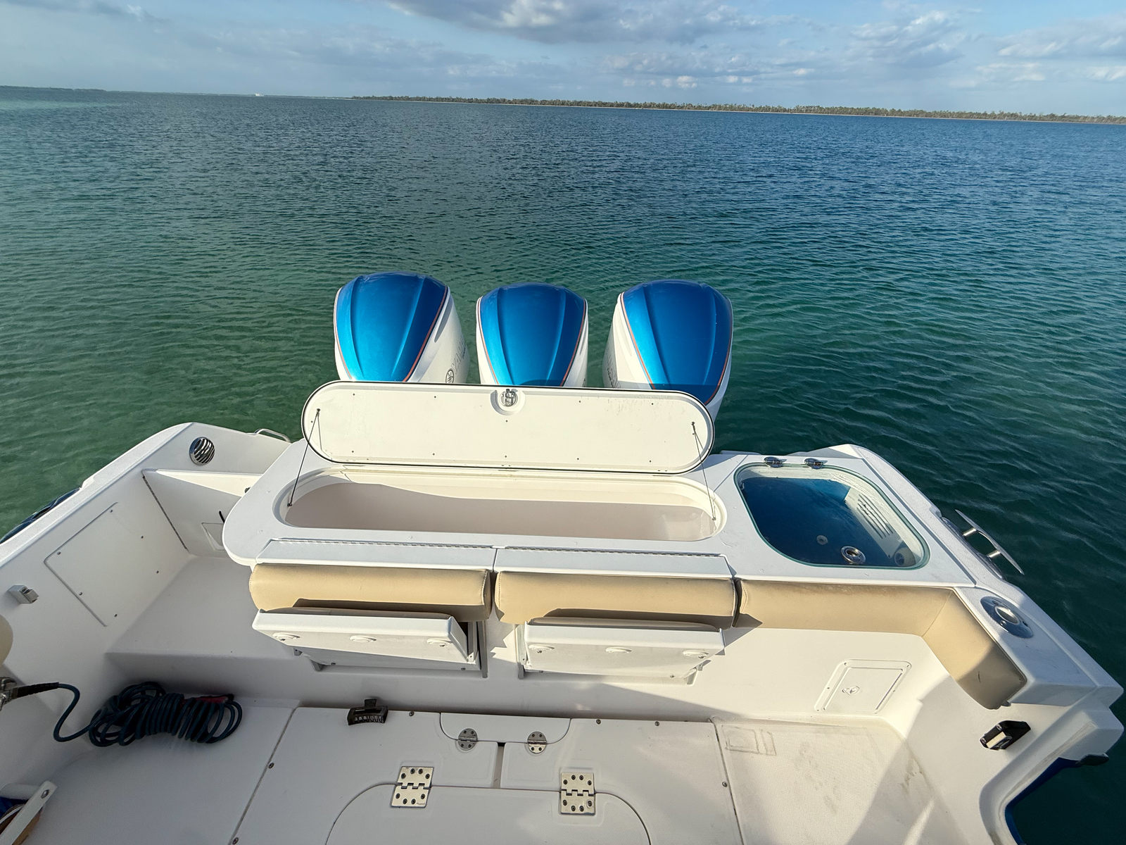 Power and precision are at the heart of the Everglades 350 LX. Equipped with three high-performance engines delivering a combined 900 horsepower, this cruiser boat for sale is engineered for exhilarating speed and smooth handling. With only 241 engine hours, these engines promise many more years of reliable performance, making this vessel a smart investment for those who value both power and longevity. The triple-engine setup ensures that you can tackle a variety of water conditions with confidence, whether you’re cruising along the coastline or heading out for offshore adventures.