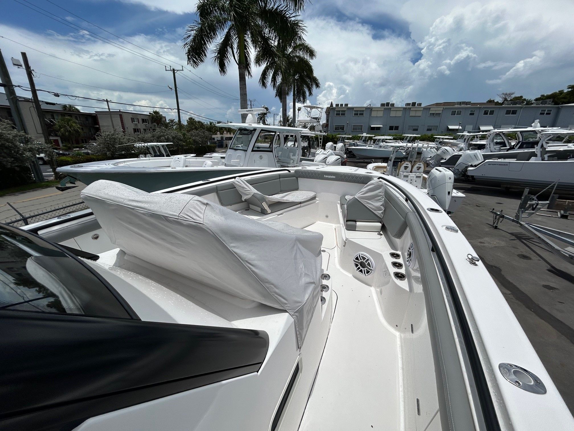 In summary, the 2024 Everglades 395 CC is a standout Center Console boat for sale that combines power, luxury, and versatility in one impressive package. With its triple-engine setup, premium features like the electric grill, Flint Gray Accent upholstery, freezer package, JL Speakers LED M6 Upgrade, Sirius XM and weather receiver, fender pins, premium package, and upper station, this Everglades boat for sale is ready to elevate your time on the water. If you are seeking a used Center Console boat that offers both excitement and comfort, the Everglades 395 CC is an exceptional choice. Contact the dealer today to learn more about this incredible opportunity and start your next adventure on the water.
