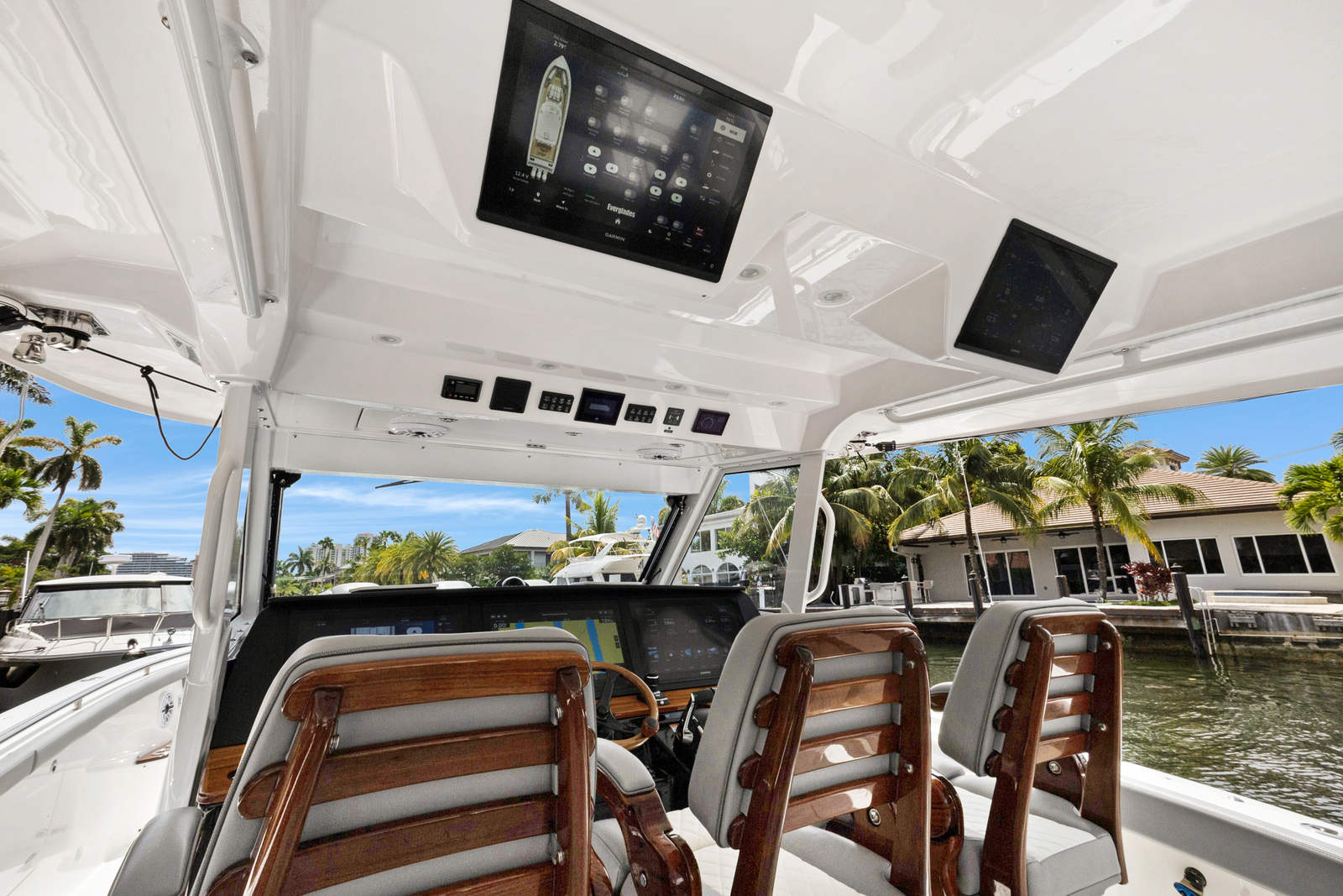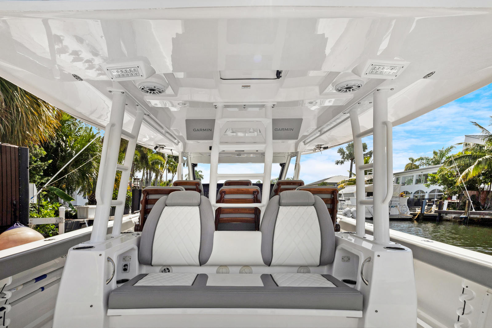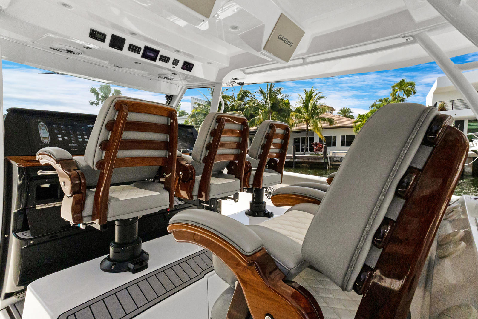 Practicality is at the core of the Everglades 455 CC’s design. The center console layout provides excellent visibility and control, making docking and maneuvering in tight spaces a breeze. Thoughtful storage solutions keep your gear organized and easily accessible, while the spacious deck allows for effortless movement during fishing trips or social gatherings. The triple-engine setup not only delivers outstanding performance but also offers redundancy and peace of mind for longer journeys.Fuel efficiency is enhanced by the advanced hull design, allowing you to spend more time on the water and less time at the fuel dock. The durable construction and high-quality materials ensure that this Everglades boat for sale will stand up to the rigors of frequent use, providing years of reliable service and enjoyment.