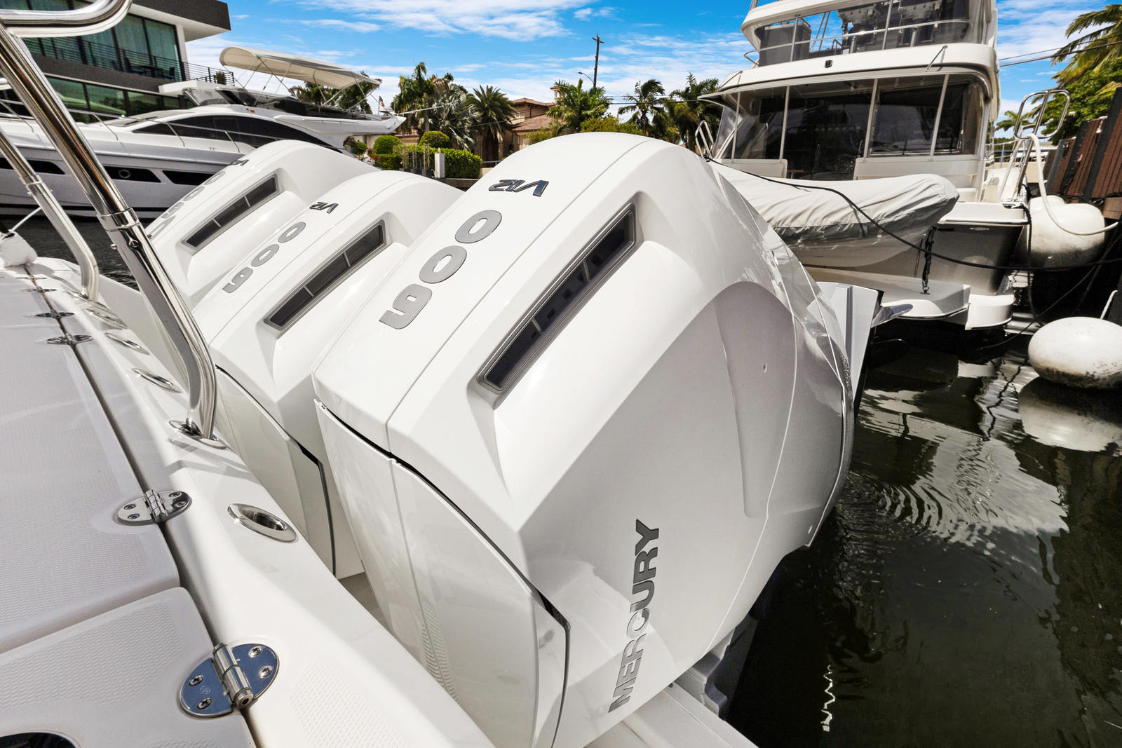 At the heart of the Everglades 455 CC are three powerful engines, delivering a combined 1800 horsepower. This impressive setup ensures exhilarating speed, smooth acceleration, and the ability to handle a variety of sea conditions with confidence. Whether you are cruising to your favorite fishing spot, island hopping, or simply enjoying a day on the water, the 455 CC’s triple-engine configuration provides the reliability and performance that serious boaters demand. The advanced hull design enhances stability and maneuverability, allowing you to navigate with ease and precision.
