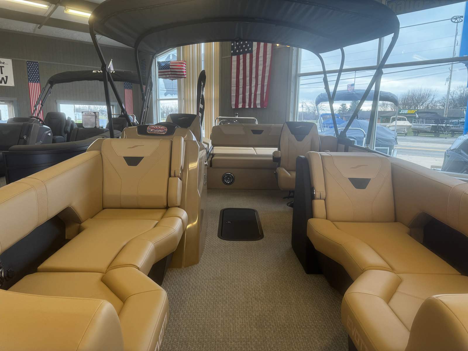 The Evotti 521 CS pontoon boat is packed with features that enhance both comfort and functionality. Its spacious 23.5-foot deck offers ample room for passengers to move around, lounge, and socialize. The innovative layout maximizes usable space, making it ideal for hosting gatherings or enjoying solo relaxation. With its modern design and attention to detail, every inch of this pontoon is crafted to provide a premium boating experience.Special features of the Evotti 521 CS include a state-of-the-art helm station for easy navigation and control, plush seating for maximum comfort, and a durable deck surface designed to withstand the elements. The pontoon’s sturdy construction ensures longevity and reliability, so you can enjoy countless seasons on the water. The new condition of this boat means you’ll benefit from the latest advancements in pontoon technology, ensuring a safe and enjoyable ride every time.