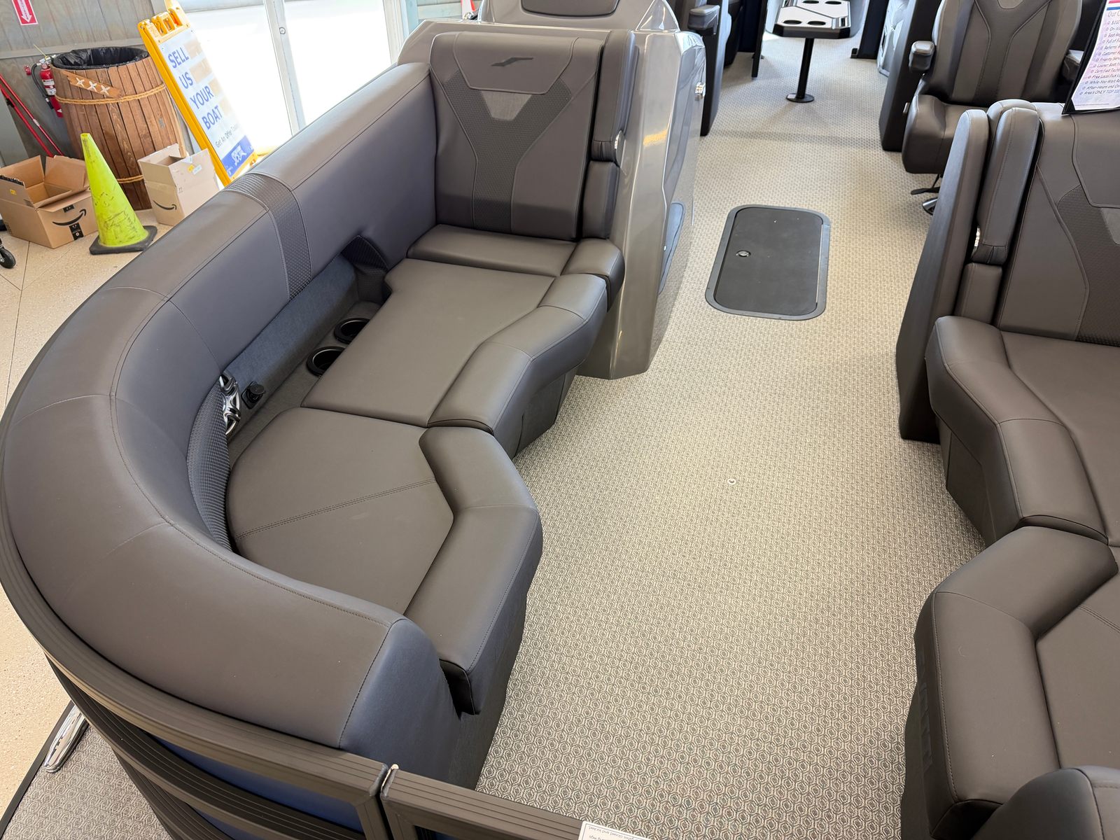 The Evotti 521 QL is designed with practicality in mind, making ownership as enjoyable as your time on the water. The thoughtfully arranged deck offers ample storage for gear, water toys, and personal items, keeping your space organized and clutter-free. The easy-to-clean flooring and resilient upholstery ensure your pontoon stays looking its best, even after a day of fun in the sun.Docking and maneuvering are simplified by the responsive handling and advanced rigging, allowing you to navigate tight spaces with confidence. The dual battery system provides peace of mind, ensuring you have the power you need for extended outings or overnight stays. Fuel efficiency is optimized by the Mercury 250XL engine, helping you spend more time cruising and less time refueling.