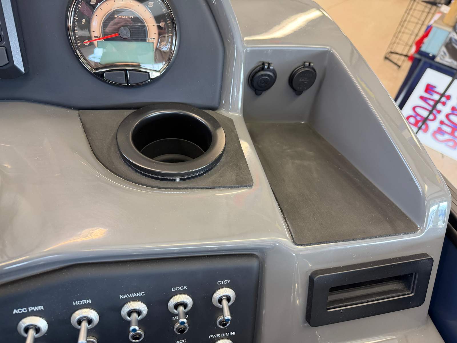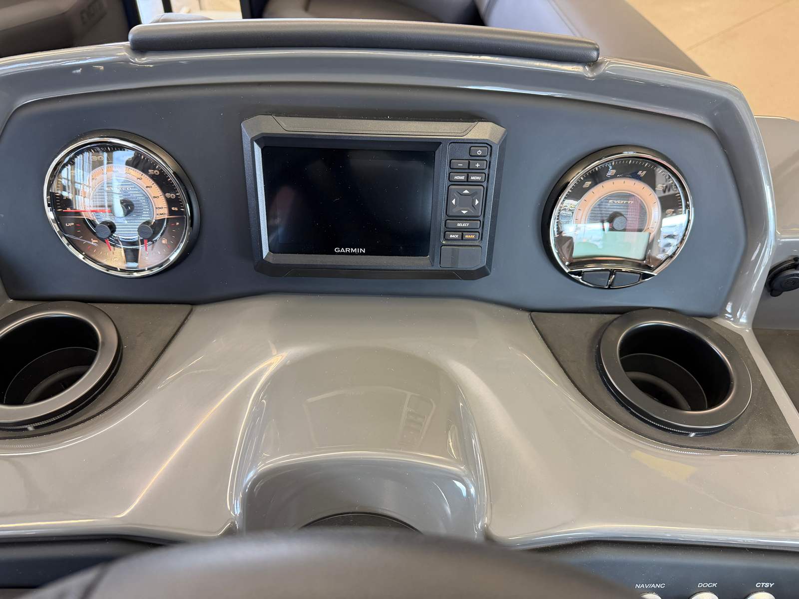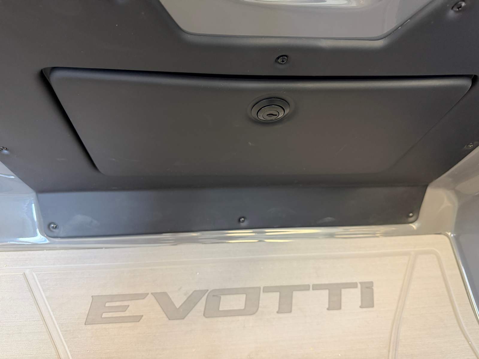 Step aboard the Evotti 521 QL and immerse yourself in a world of luxury and innovation. The Panel Platinum Blue Satin and Panel Accent Diamond Black Satin create a striking visual impression, while the Canvas Black provides both style and protection from the elements. The Base Vinyl Spectra Black upholstery is not only visually appealing but also designed for durability and comfort, ensuring your seating remains pristine season after season.The Steel Gray Evolution Flooring adds a touch of sophistication and is engineered for easy cleaning and long-lasting wear, making it ideal for active families and social gatherings. The dual battery system ensures you have reliable power for all your onboard electronics and accessories, while the Garmin 5" Echo Map with 5" gauges offers advanced navigation and real-time data at your fingertips. Every detail of the Evotti 521 QL is crafted to enhance your boating experience, from the premium finishes to the state-of-the-art technology.