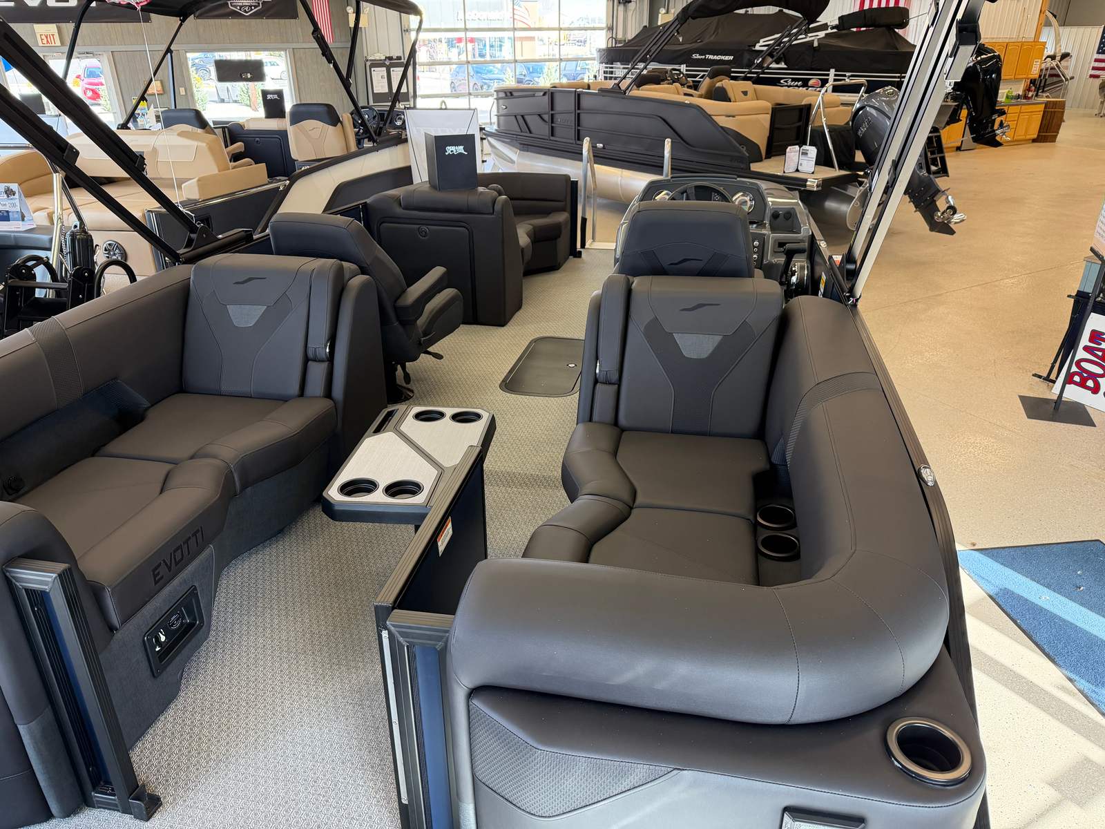 The 2026 Evotti 521 QL Pontoon is more than just a boat – it is your gateway to a world of fun, relaxation, and adventure. With its striking design, powerful Mercury 250XL engine, and a host of premium features including Panel Platinum Blue Satin, Panel Accent Diamond Black Satin, Canvas Black, Base Vinyl Spectra Black, Steel Gray Evolution Flooring, dual batteries, and a Garmin 5" Echo Map with 5" gauges, this pontoon is ready to deliver unforgettable experiences on the water.If you are looking for an Evotti boat for sale that combines style, performance, and versatility, the 521 QL is the perfect choice. Discover the joys of pontoon ownership and make every day on the water extraordinary. Contact your local dealer today to learn more about the Evotti 521 QL and start your next adventure!