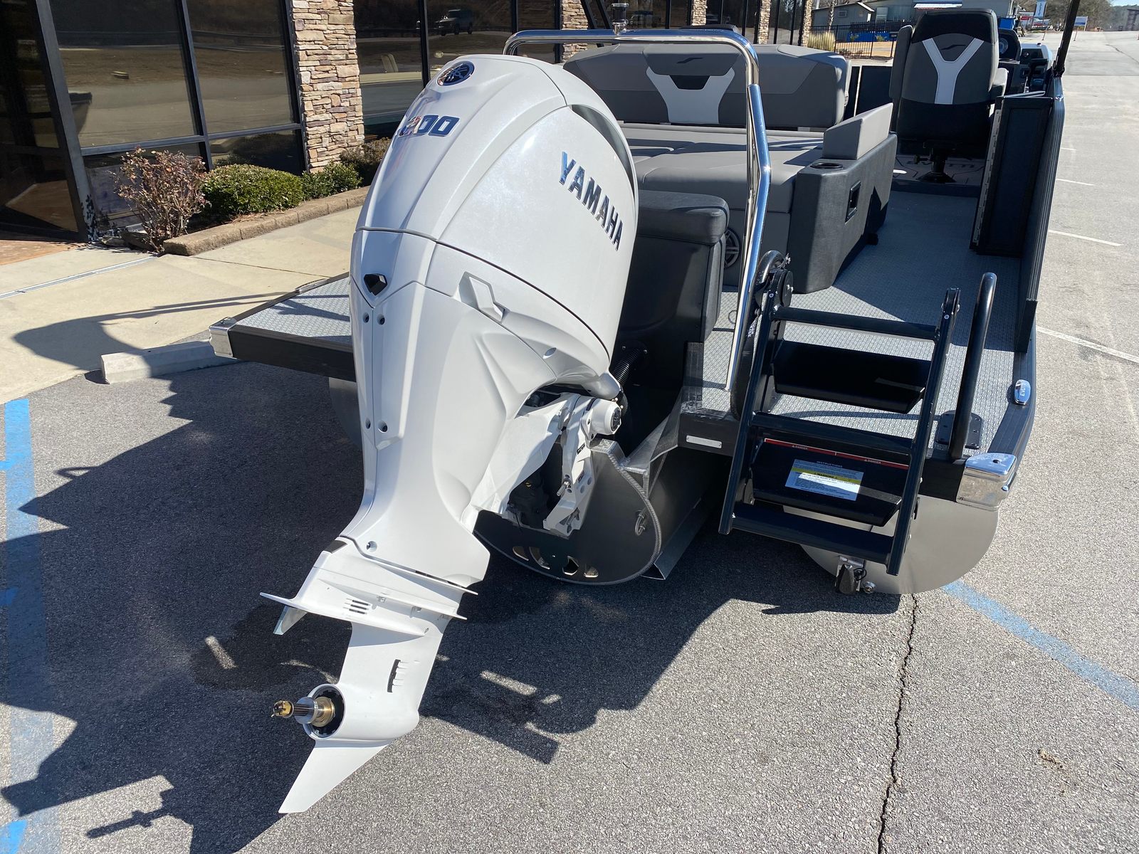 The Evotti 523 CS pontoon is loaded with premium features that set it apart from other pontoon boats for sale. The striking Panel Platinum Blue Satin finish, accented by the elegant Panel Accent Pearl White Gloss, creates a modern and eye-catching exterior. The Canvas Black adds a touch of sophistication and provides shade and protection when needed. Step aboard and you’ll be greeted by the luxurious Base Vinyl Steel Gray upholstery, which is both stylish and comfortable, while the Steel Gray Evolution Flooring offers durability and a contemporary look that’s easy to maintain.For the captain and tech enthusiasts, the Garmin 943 with 5" gauges delivers advanced navigation and system monitoring, putting all the information you need right at your fingertips. The single battery setup is efficient and reliable, supporting all your onboard electronics and ensuring worry-free outings. Every detail, from the prerig Yamaha mechanical system to the expertly designed rigging, is crafted to enhance your time on the water.