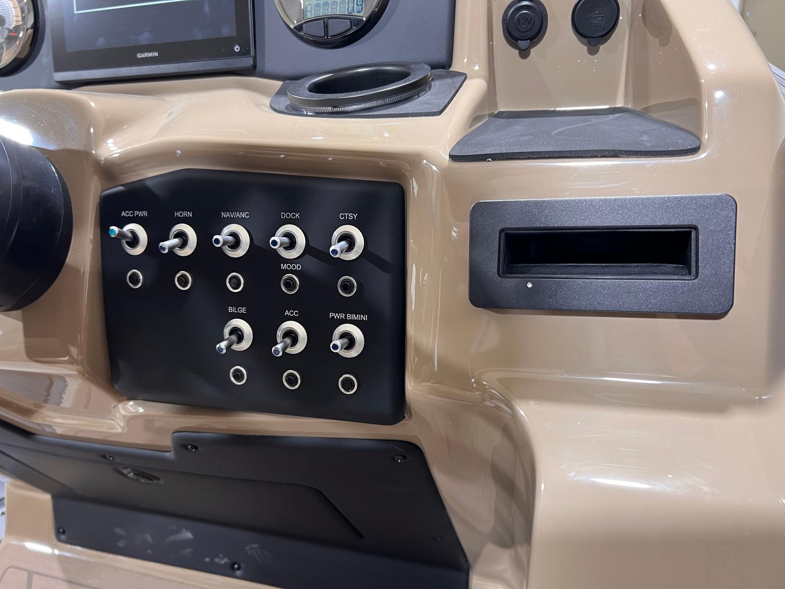 The 2026 Evotti 523 CS is loaded with special features that elevate comfort, safety, and style. The Panel Platinum Blue Satin exterior gives the boat a sophisticated and contemporary look, while the Canvas Black accents add a touch of elegance and protection from the elements. Inside, the Base Vinyl Roan Bronze upholstery provides a plush, inviting atmosphere, perfectly complemented by the Roan Bronze Evolution Flooring, which is both stylish and easy to maintain.Safety is a top priority, with stern safety chains offering added peace of mind for you and your guests. The dual battery setup ensures reliable power for all your onboard systems, so you can enjoy longer days on the water without interruption. The 523 CS is also equipped with a 500 Series prerig Yamaha mechanical system, designed for optimal compatibility and performance with the Yamaha F200XD engine.