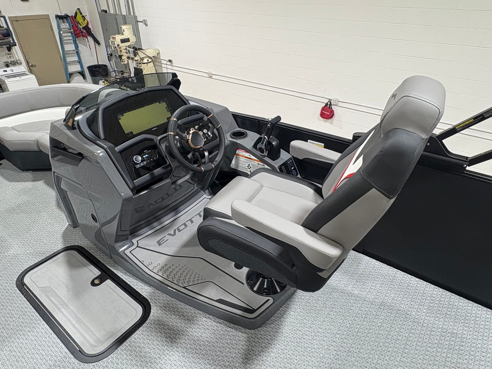 The Evotti 723 CS is loaded with premium features that enhance both comfort and entertainment. The JL Premium Head Unit & Speakers provide crystal-clear audio, setting the perfect soundtrack for your boating adventures. The Steel Gray Evolution Flooring offers durability and a modern look, complemented by the Base Vinyl Steel Gray upholstery for a cohesive, stylish interior. The Panel Diamond Black Satin adds a touch of sophistication to the boat’s exterior, ensuring you turn heads wherever you go.A standout feature is the 15" Ultra Wide Display, offering intuitive access to navigation, system controls, and entertainment options. This advanced display keeps you informed and in command, making every journey safer and more enjoyable. The power assist steering further enhances maneuverability, while the thoughtful layout maximizes space for relaxation and socializing.