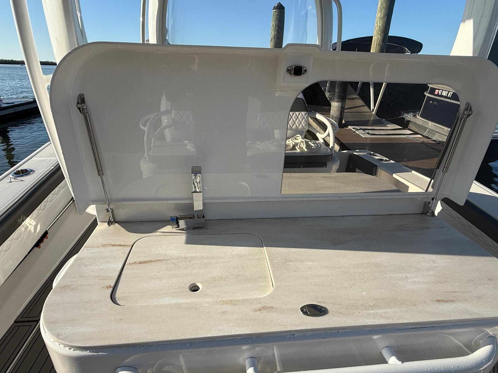 Practicality meets luxury in the Fountain 39 NX. The boat's intelligent design includes ample storage for fishing gear, water toys, and personal belongings, making it easy to keep the deck clutter-free and organized. Docking and maneuvering are simplified by the responsive controls and triple-engine configuration, allowing you to navigate tight spaces with ease. The efficient engine setup also contributes to better fuel economy, so you can spend more time on the water and less time at the fuel dock.The Fountain 39 NX is built for convenience, with features that enhance the overall ownership experience. From the easy-to-access helm station to the spacious walkways and comfortable seating, every detail is designed to make your time on the water as enjoyable and stress-free as possible. Whether you are heading out for a quick sunset cruise or planning an all-day adventure, this center console boat adapts to your needs with style and ease.