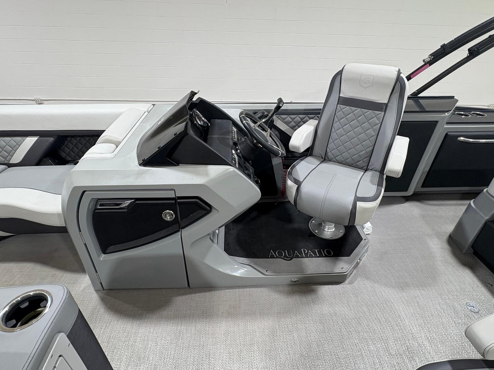 The Godfrey Aqua Patio 235 Sflc comes equipped with a host of special features that set it apart from other pontoon boats for sale. Enjoy the convenience of a FULL MOORING COVER, which helps protect your investment and keeps your boat looking pristine. The POWER BIMINI TOP offers effortless shade and shelter, allowing you to relax in comfort no matter the weather. The TRANSOM RAIL SYSTEM adds safety and versatility, while DOCKING LIGHTS make evening arrivals and departures a breeze.For those who love water activities, the FOLDING SWIM LADDER and SKI TOW BAR make it easy to dive in or enjoy exhilarating water sports. The UNDERWATER LIGHTS and RGB UNDERDECK LIGHTS create a captivating ambiance for nighttime cruises, while the RGB INTERIOR LIGHTING lets you set the mood for any occasion. The stainless steel prop not only boosts performance but also adds a touch of sophistication to the boat’s overall design.