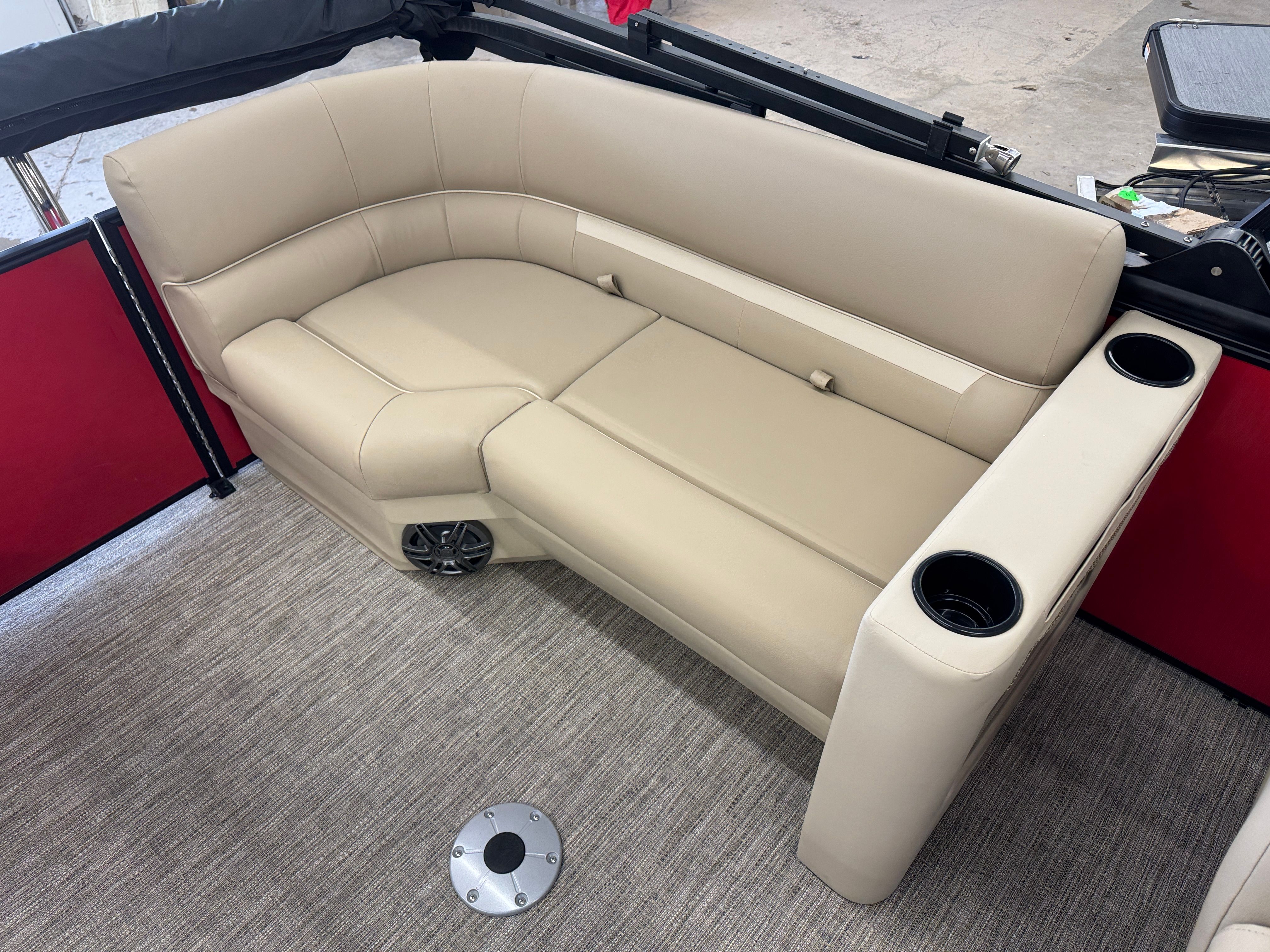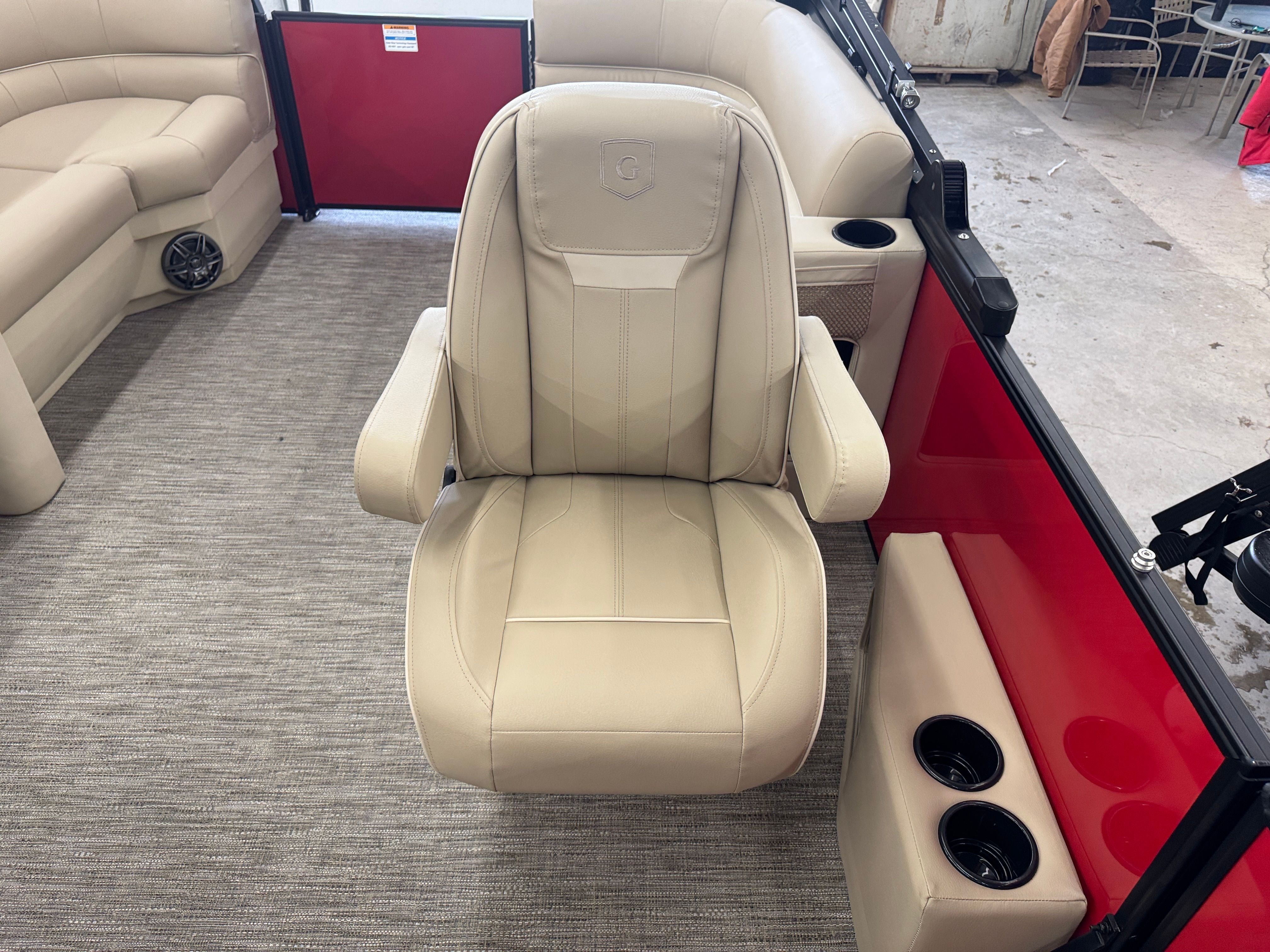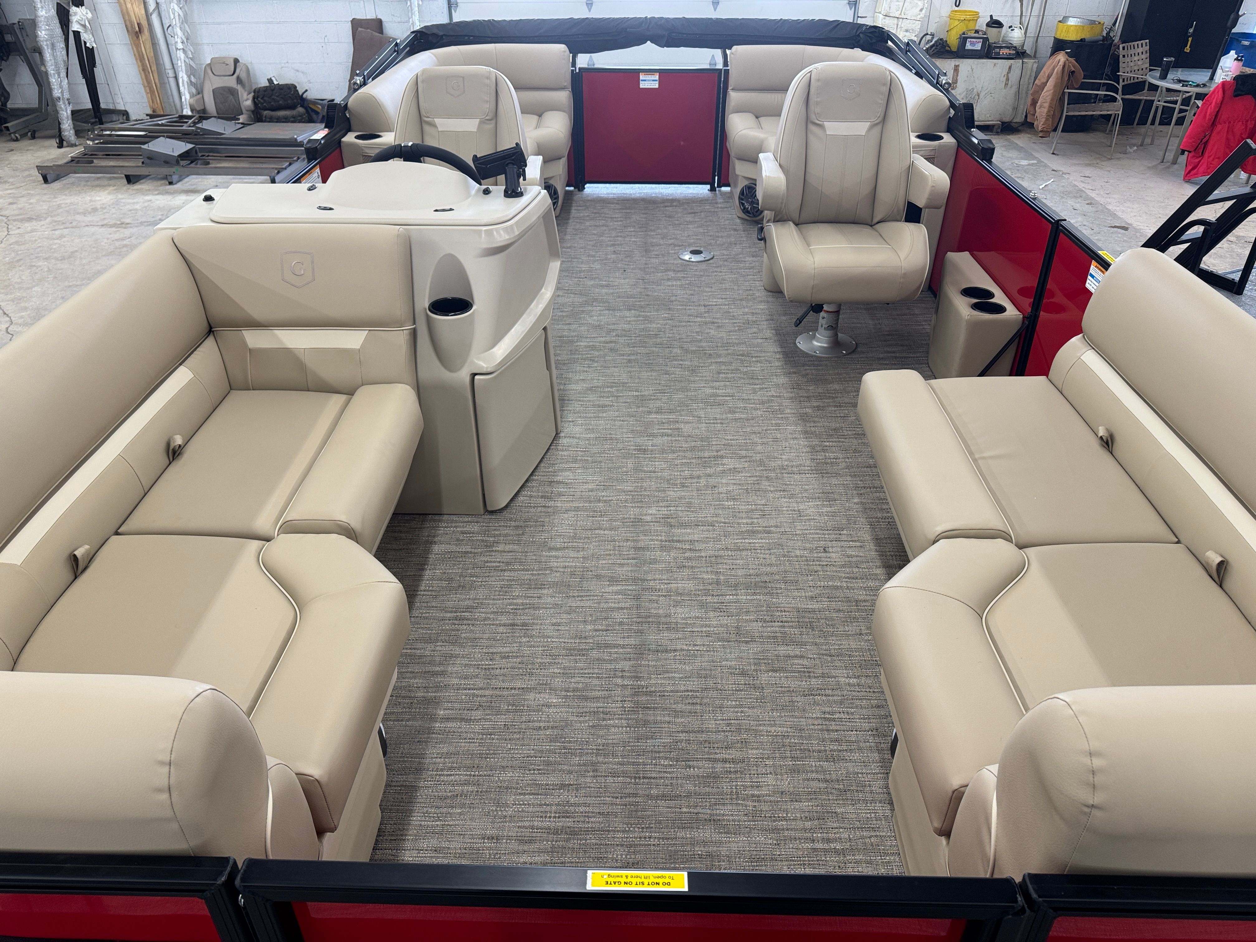 The 2026 Godfrey EX 2086 SBX is packed with special features that elevate your time on the water. The striking Crimson Smooth rail skin color gives the pontoon a bold and sophisticated appearance, while the Autumn Tan interior base vinyl and Deep Tan accent vinyl create a warm and inviting atmosphere. The power canopy, finished in sleek black with a protective boot and dome light, offers convenient shade and shelter, making it easy to relax in comfort no matter the weather. The snapless playpen cover in black provides quick and secure protection for your boat when not in use.The Xperience Extended Deck offers additional space for lounging, entertaining, or fishing, giving you more room to enjoy your favorite activities. The additional battery extension ensures you have the power you need for longer days on the water, while the Black EZ Climb Stern ladder makes boarding and disembarking safe and effortless. LED docking lights not only enhance the boat’s appearance but also provide excellent visibility during evening outings and when returning to the dock after sunset.