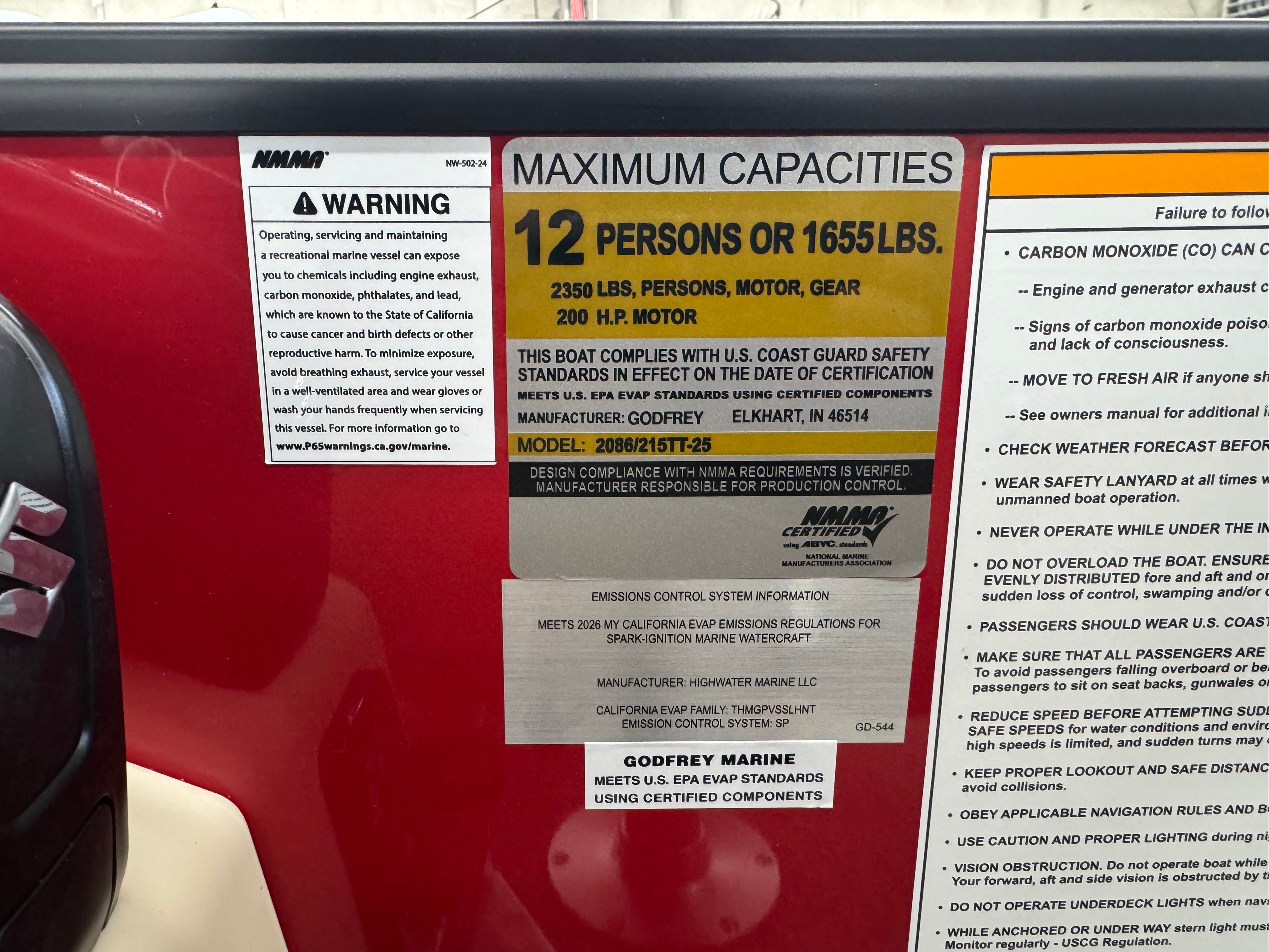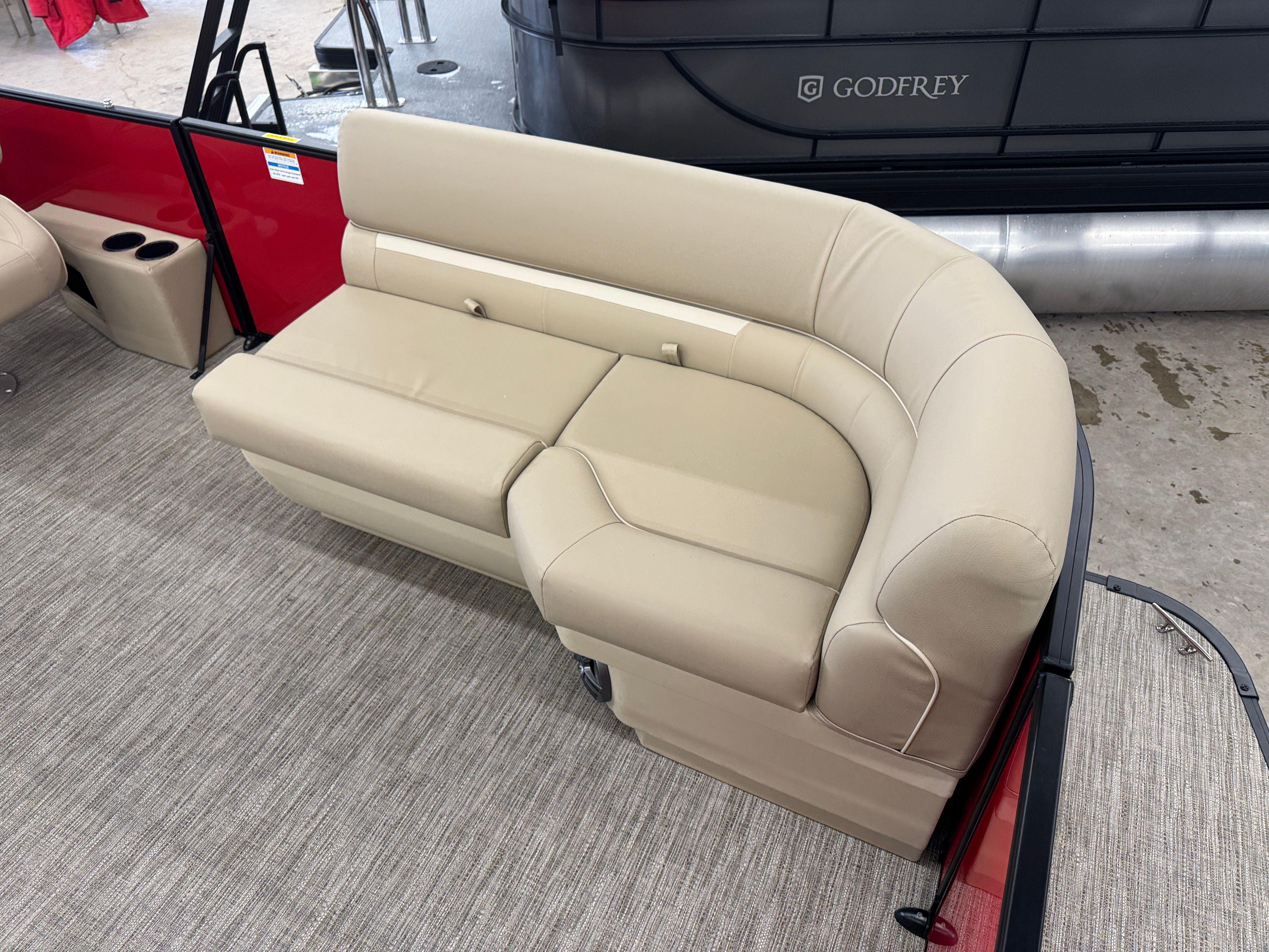 The 2026 Godfrey EX 2086 SBX pontoon boat is a standout option for anyone seeking a new pontoon boat for sale that offers style, performance, and versatility. With its striking Crimson Smooth rail skin, inviting Autumn Tan and Deep Tan interior, powerful Suzuki DF150ATX engine, and a host of thoughtful features like the power canopy, snapless playpen cover, extended deck, additional battery extension, EZ Climb Stern ladder, and LED docking lights, this boat is designed to deliver endless enjoyment on the water.Whether you are planning family adventures, social gatherings, or peaceful escapes, the Godfrey EX 2086 SBX is ready to make every outing special. Don’t miss your chance to own a top-quality Godfrey boat for sale that combines luxury, practicality, and fun. Contact your local dealer today to learn more and start your next boating adventure!