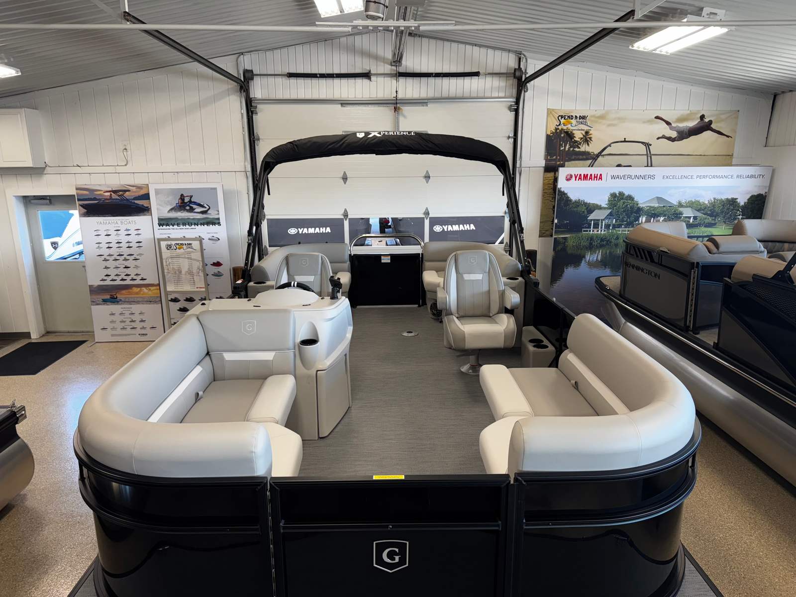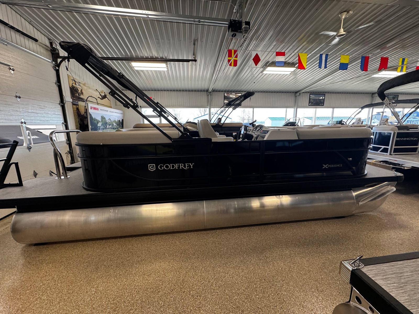 The Godfrey EX 2086 SBX is loaded with features that enhance both convenience and enjoyment on the water. The Click & Cruise Flag Pole Kit and Click & Cruise Tethers (set of 6) provide easy customization and secure attachment points for your gear and accessories. The power canopy with a protective boot and dome light in black offers shade and shelter with the push of a button, ensuring comfort in any weather. The snapless playpen cover in black keeps your pontoon protected when not in use, while the 25-inch transom adds stability and strength to the vessel.The Xperience Extended Deck offers additional space for lounging, entertaining, or fishing, making this pontoon ideal for social gatherings and family outings. The additional battery extension ensures you have the power you need for longer adventures, while the Black EZ Climb Stern Ladder makes boarding and disembarking safe and easy for everyone. LED docking lights provide enhanced visibility during evening cruises or when returning to the dock after sunset. The anodized black rail frame not only adds to the boat’s visual appeal but also offers durability and corrosion resistance.