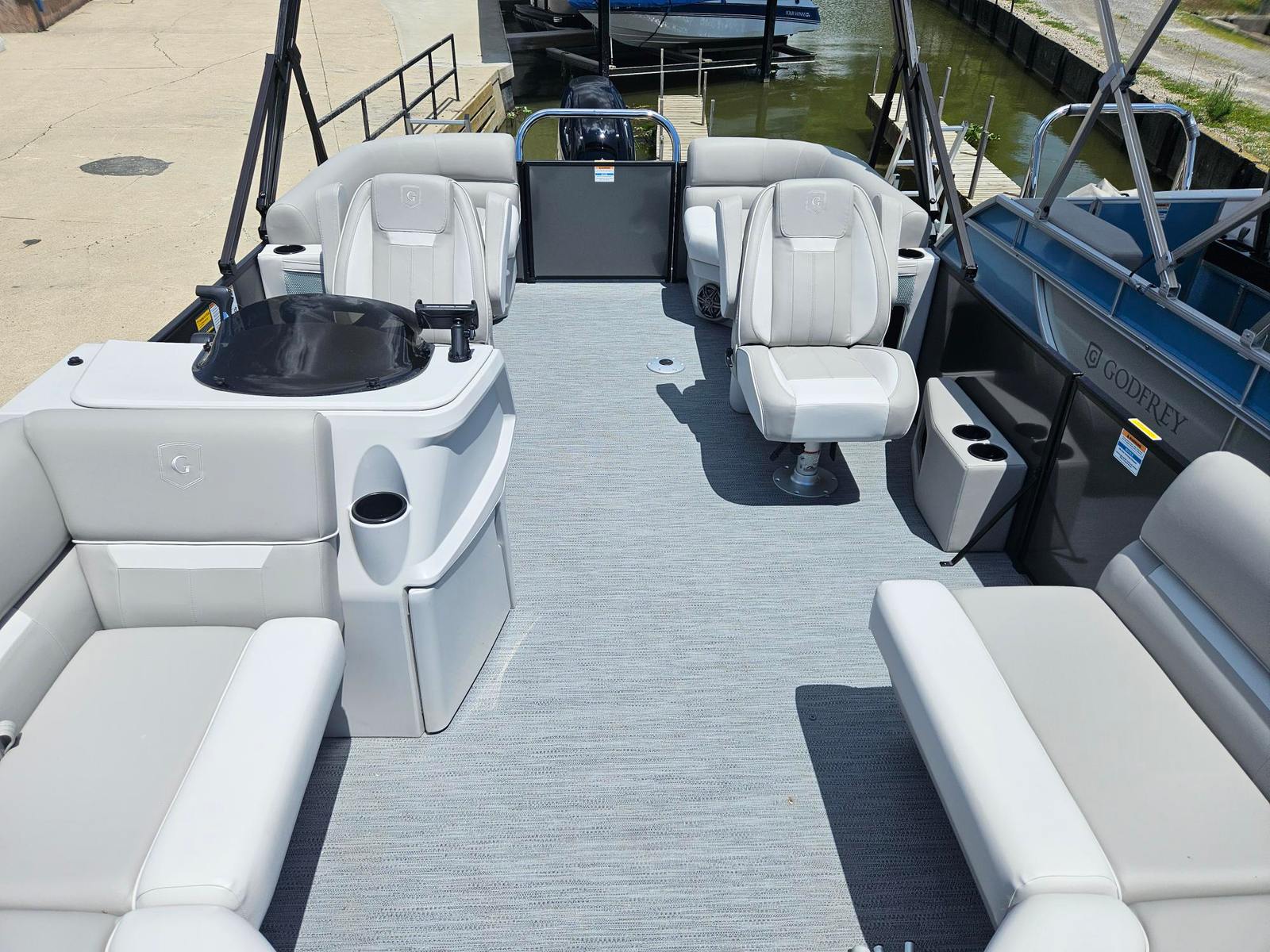 This pontoon truly shines in a variety of scenarios. It is perfect for family outings, offering plenty of space for kids to play and adults to relax. The extended deck and comfortable seating make it an excellent choice for entertaining friends, whether you are hosting a lakeside barbecue or a sunset cocktail cruise.Fishing enthusiasts will appreciate the stability and spaciousness of the Godfrey EX 2086 SBX, making it easy to cast a line and enjoy a peaceful day on the water. For those seeking a touch of luxury, the modern design and premium features create an inviting atmosphere for romantic getaways or leisurely afternoons spent exploring new coves.